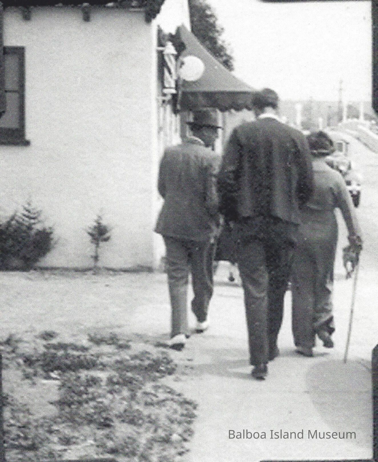 B&W photo of people walking on Marine Avenue in mid-1930's.