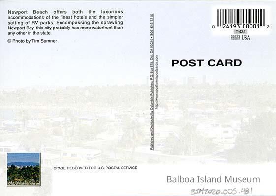 Unused. Published by Columbia Publishing in Ojai, CA. Photogrpah by Tim Sumner. Postcard number T-425. Printed by Maracom. Print number 25323.