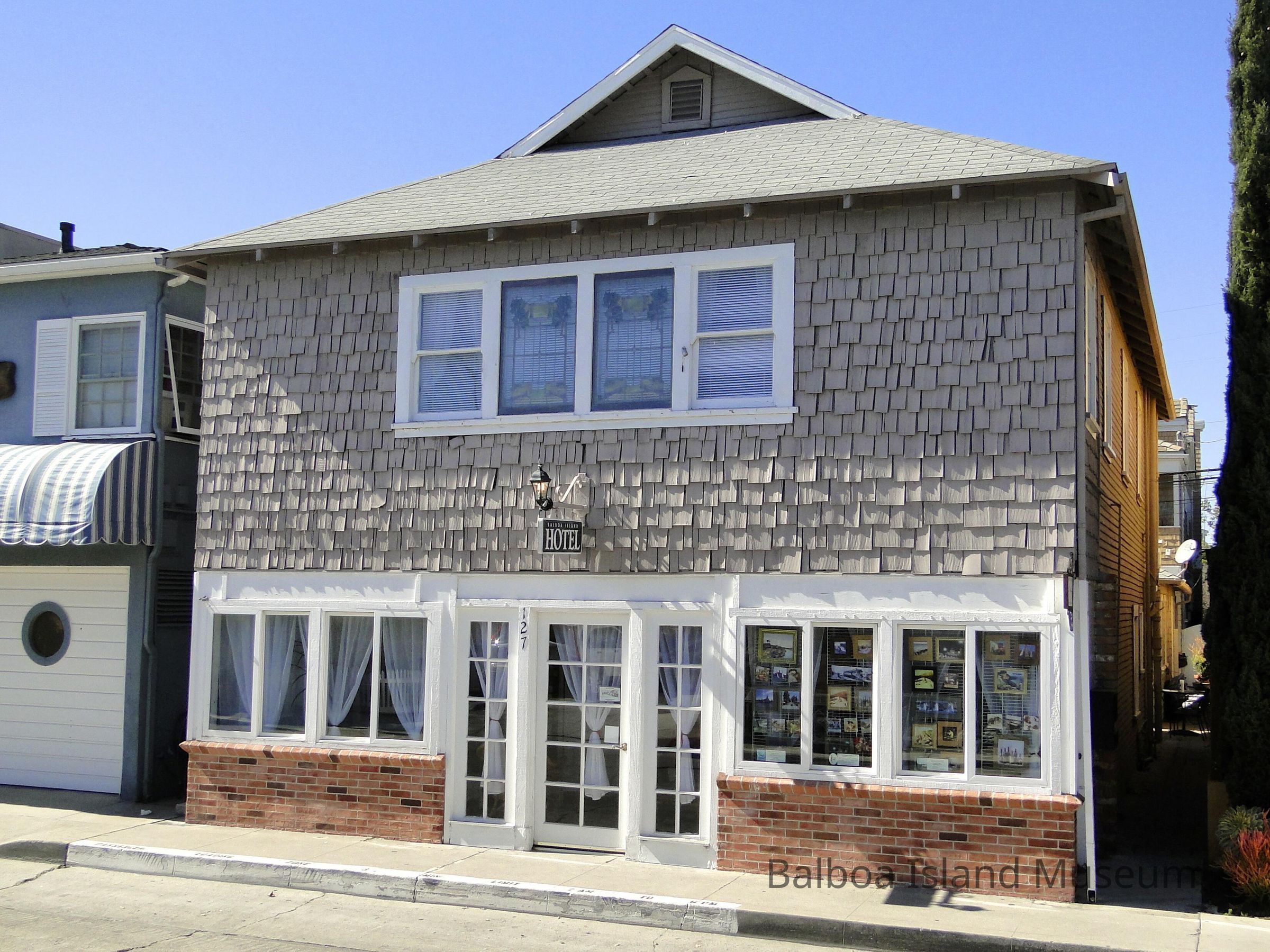 Color photo of front of Balboa Island Hotel at 127 Agate Avenue.Lexicon