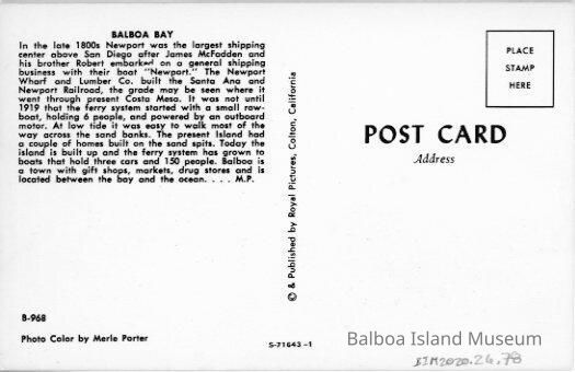 Published by Royal Pictures in Colton, California. Photograph by Merle Porter. Postcard number B-968. Printer numbers S-71643-1 and ICS-71643.Subject