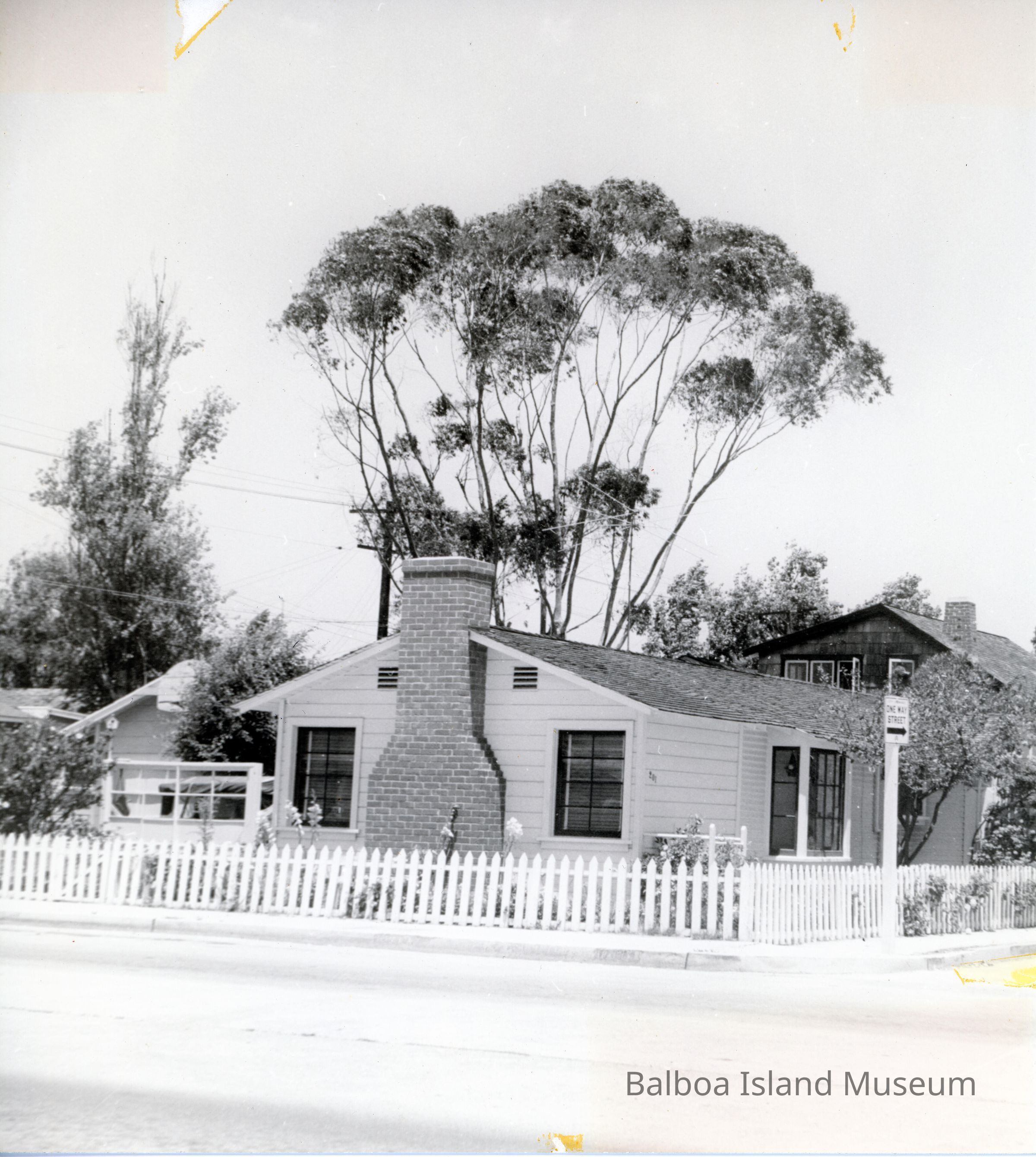 A print of 201 Apolena. Taken between 1930 and 1950. Single story building with a chimney on the left side at the corner of Apolena and Park Avenue. The house has been torn down.