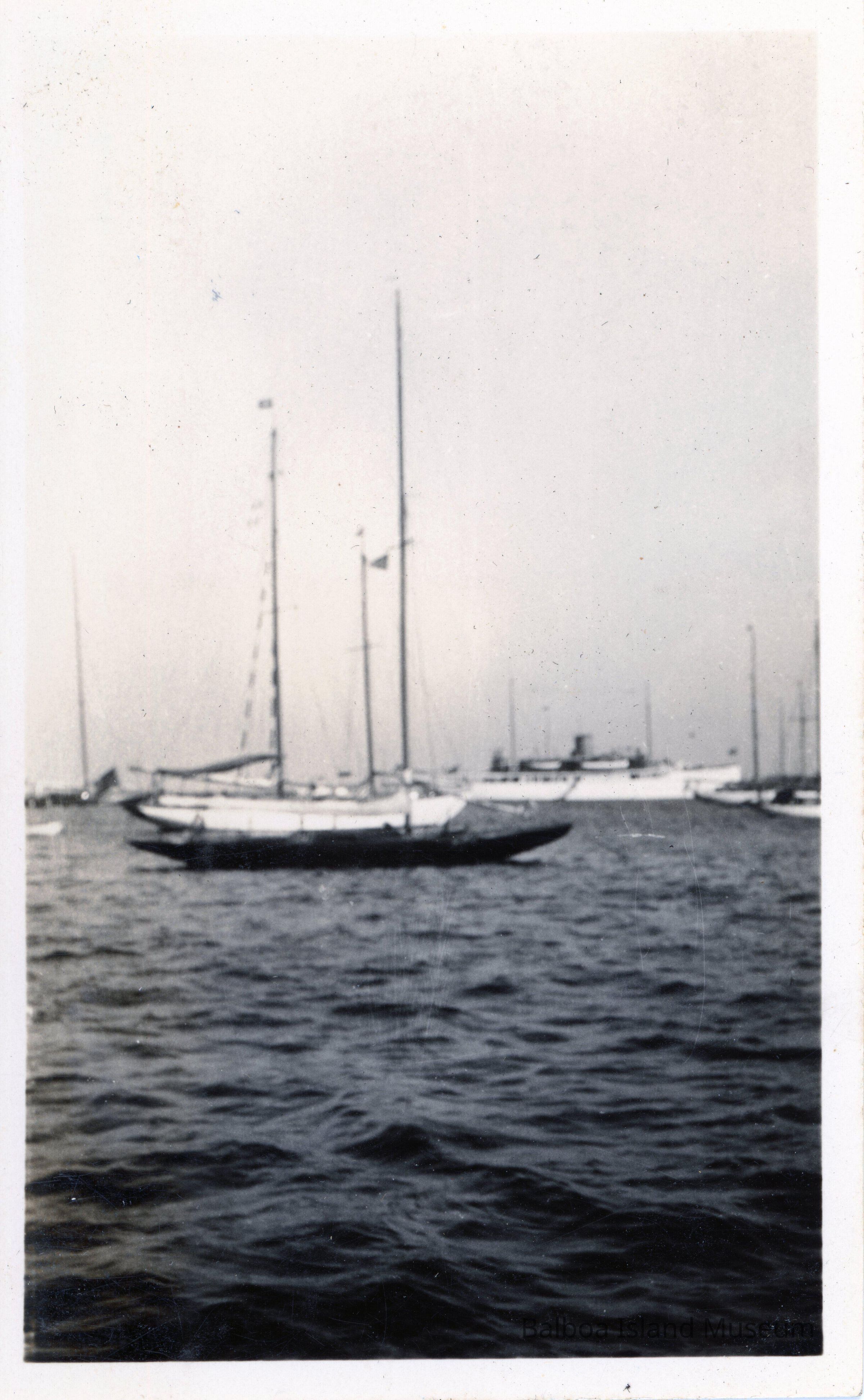 Sail Boat in Newport Harbor. The envelope holding the negative says "High Waves + Water at Balboa taken in 1934 summer"