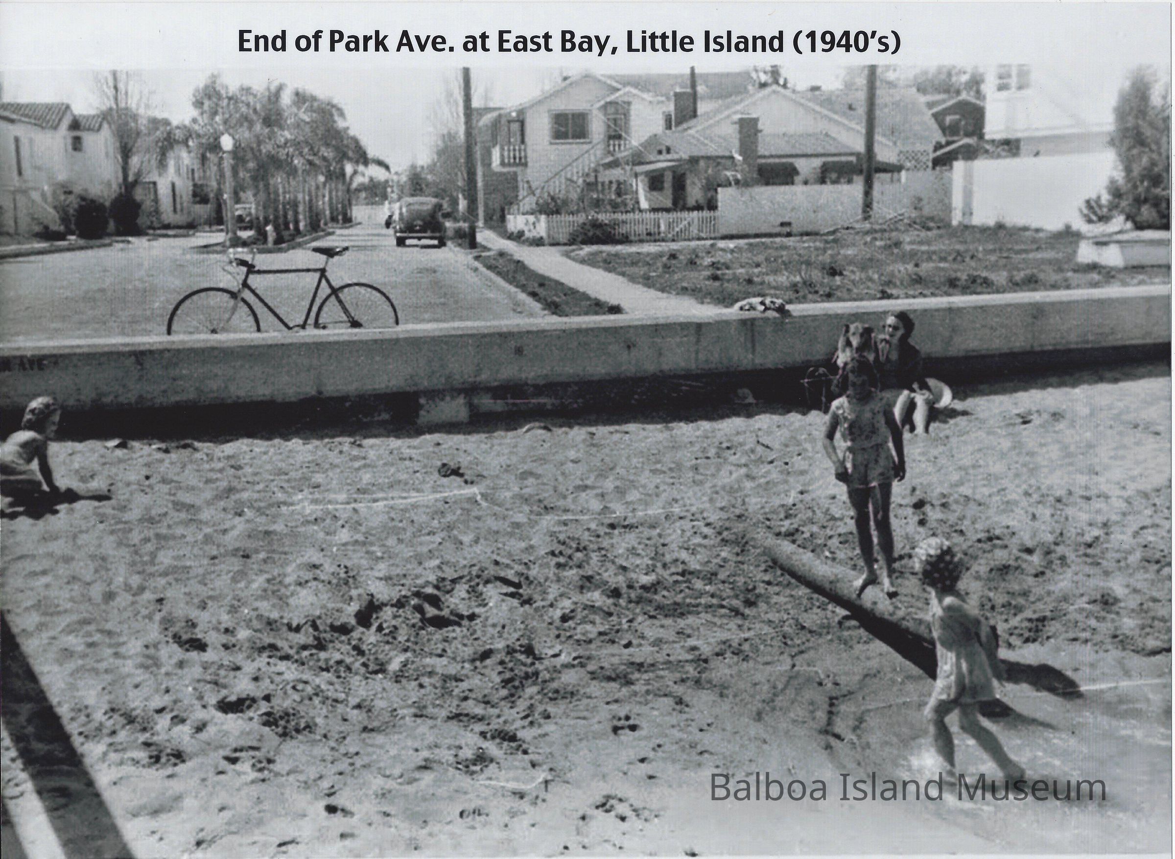 B&W photo of kids playing on beach at Park and East Bay Front.Collection