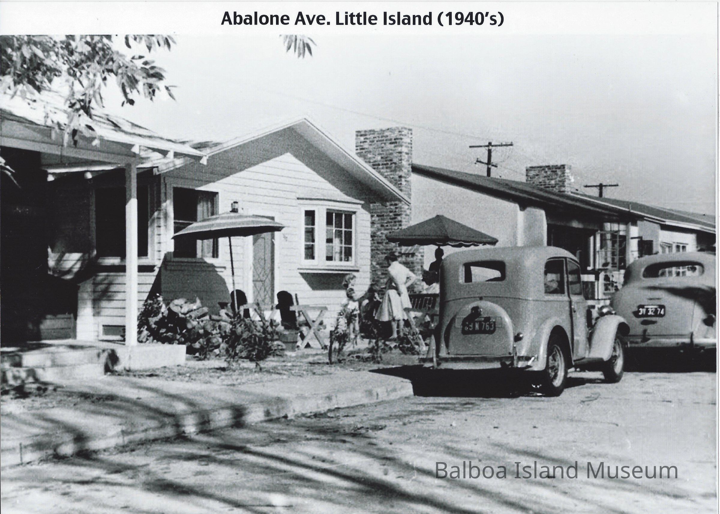 B&W photo of home and cars on Abalaone Avenue.Collection