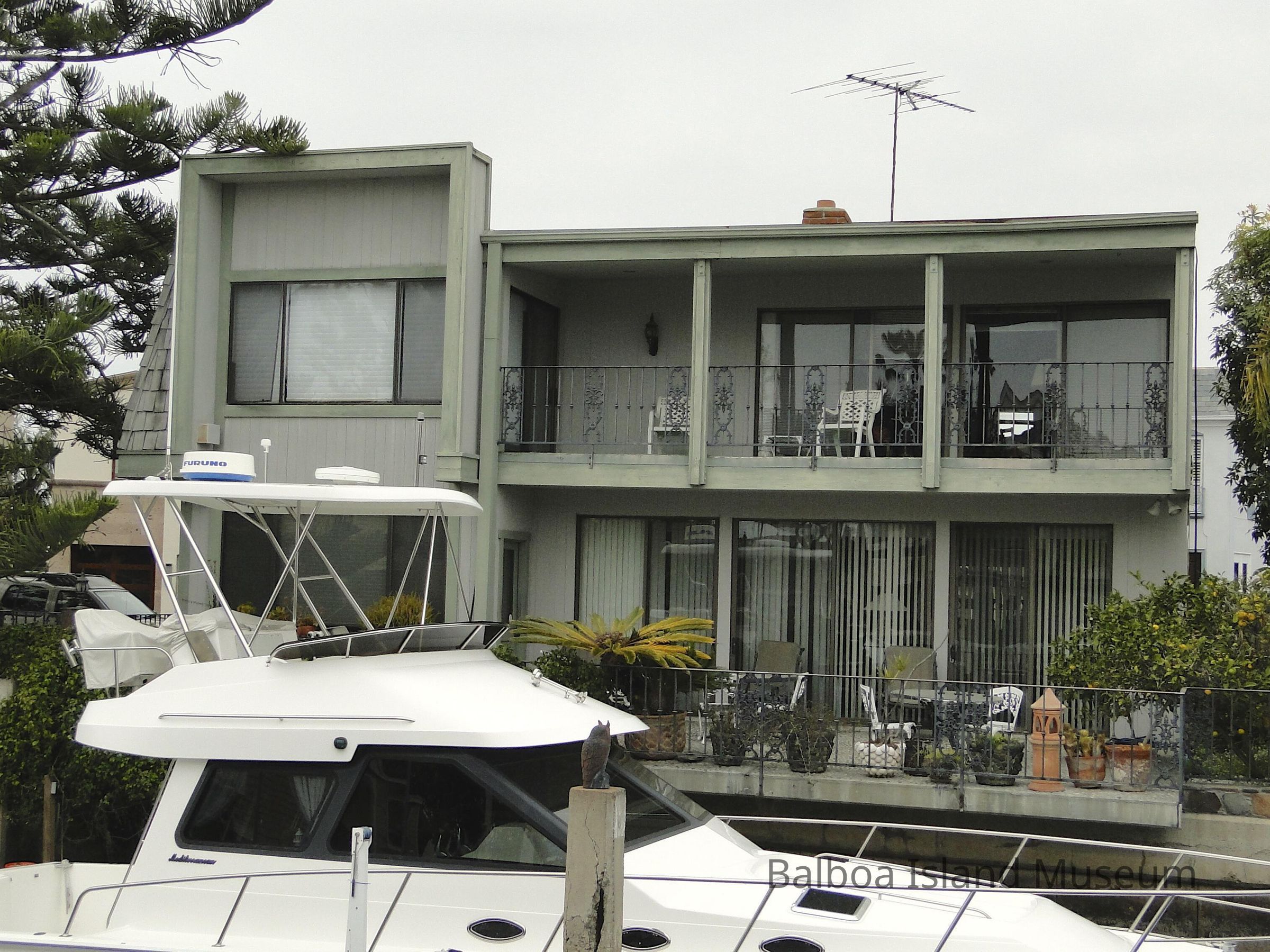 Color photo in front of home at 8 Collins Island.Made/Created