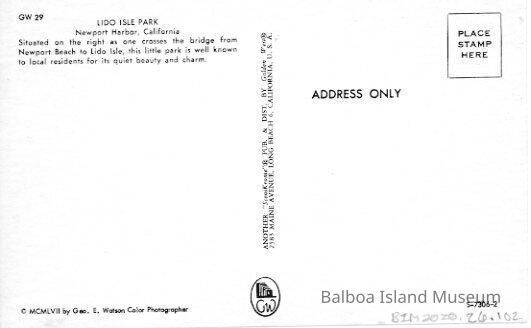 Lido Isle Park, Newport Harbor, CaliforniaEntry/Object ID