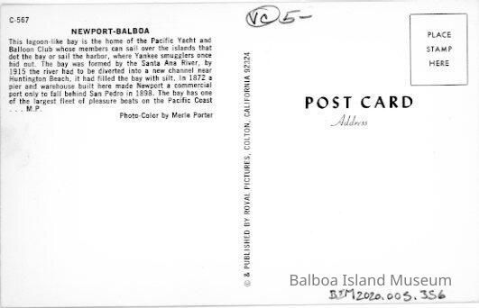 Unused. Published by Royal Pictures in Colon. Photograph and blurb on the back by Merle Porter. Postcard number C-567. Copyright held by Royal Pictures.Subject