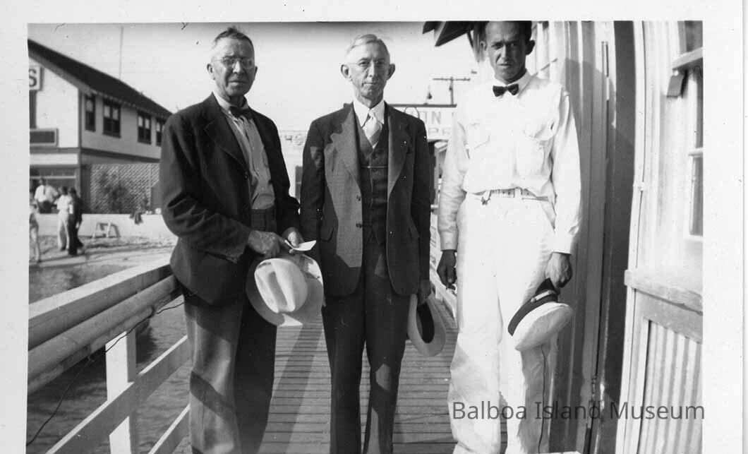 Harold Caldwell with Two Unknown Men, Balboa Island Union Oil Marine Station