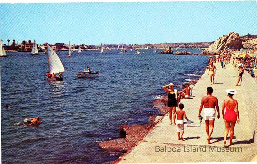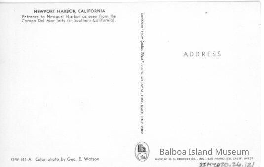 Two copies of a color postcard looking into the Harbor taken from the Corona del Mar Jetty.