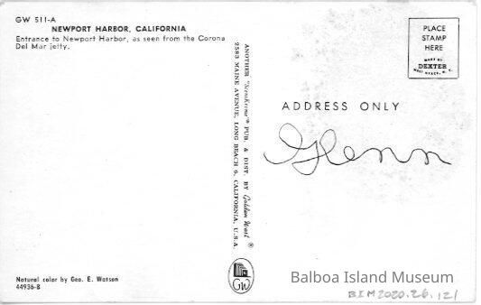 Published by Golden West. One printed by H. S. Crocker Co., Inc and one printed by Dexter press. Photograph by George E. Watson. Postcard number GW 511-A. Print number for the Dexter print is 44936-B. one postcard has Glenn written on it.Subject