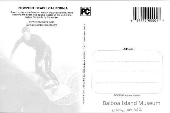 Unused. The back has a barcode instead of a stamp box. Published by Postcards & Cards Unlimited and printed in the USA. Photograph by David Allen. Postcard number Newport 403.Subject
