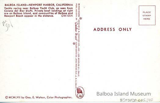 The used postcard was sent on August of 1962 from Newport Beach, California to Mr. & Mrs. Causey in South San Gabriel, California. Sent by their grandchild, Chris.Subject
