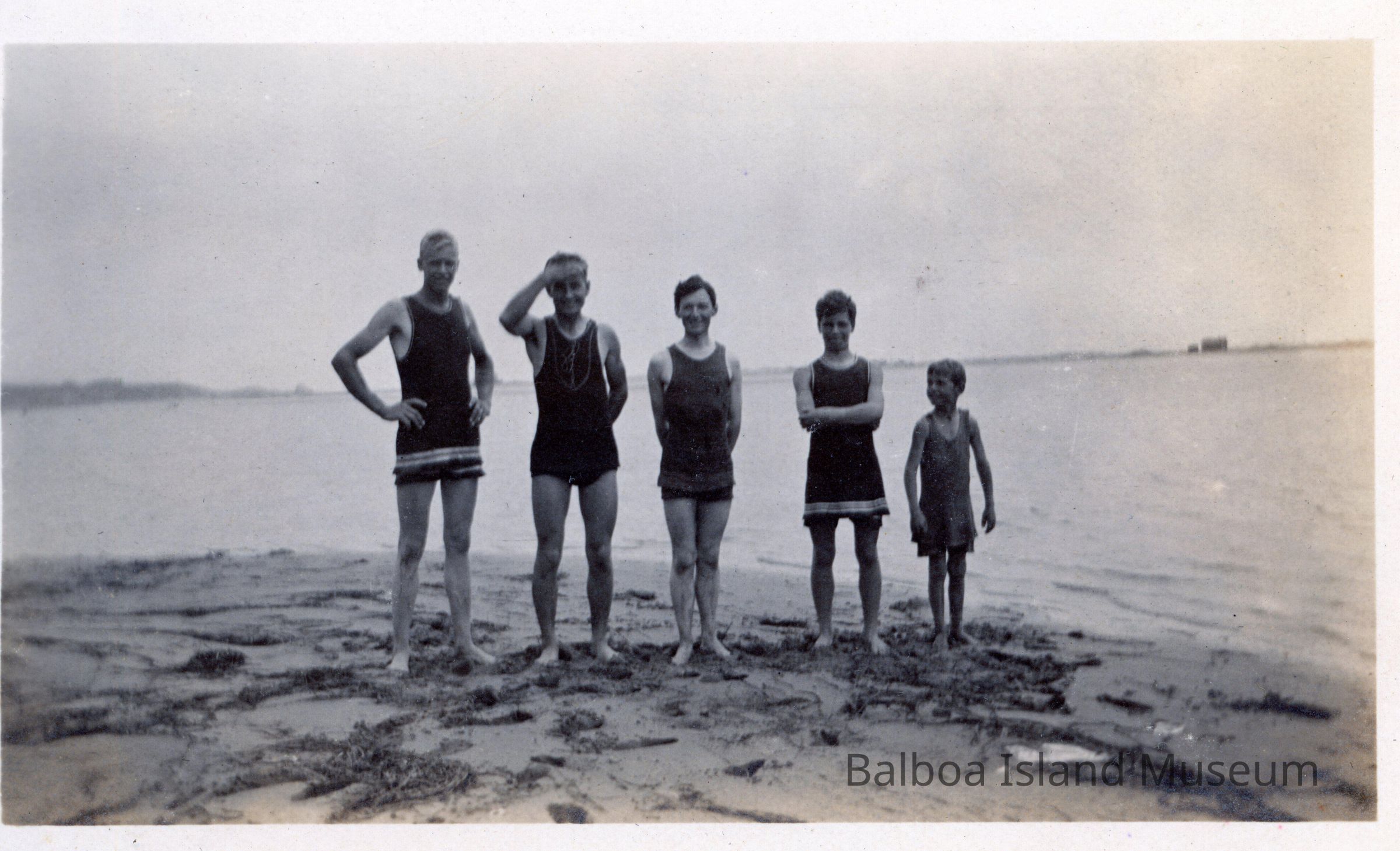 Boys in Bathing Suits on Balboa Island Beach, July 1911