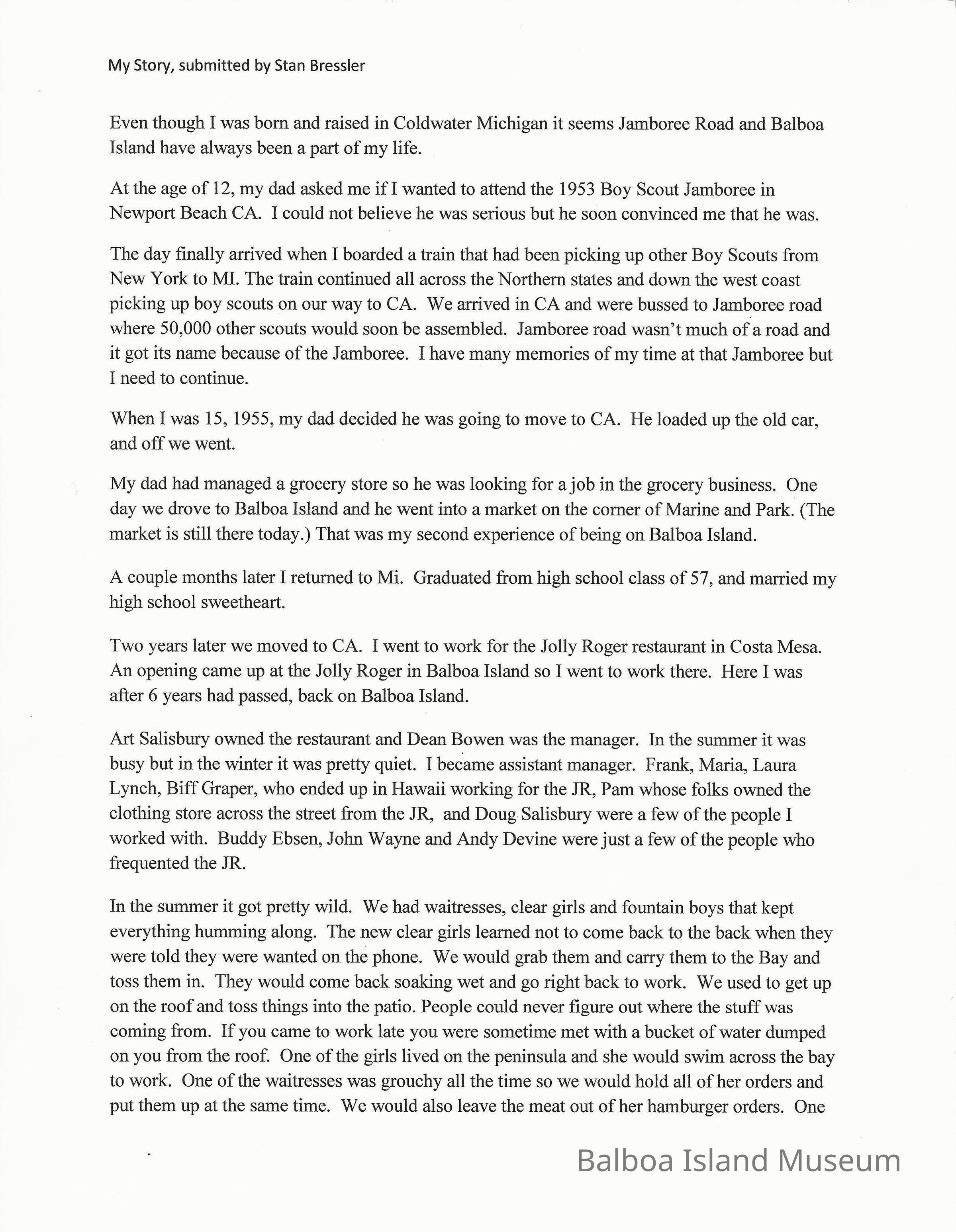 Stan Bressler - History of the Boy Scout Jamboree 1953Entry/Object ID