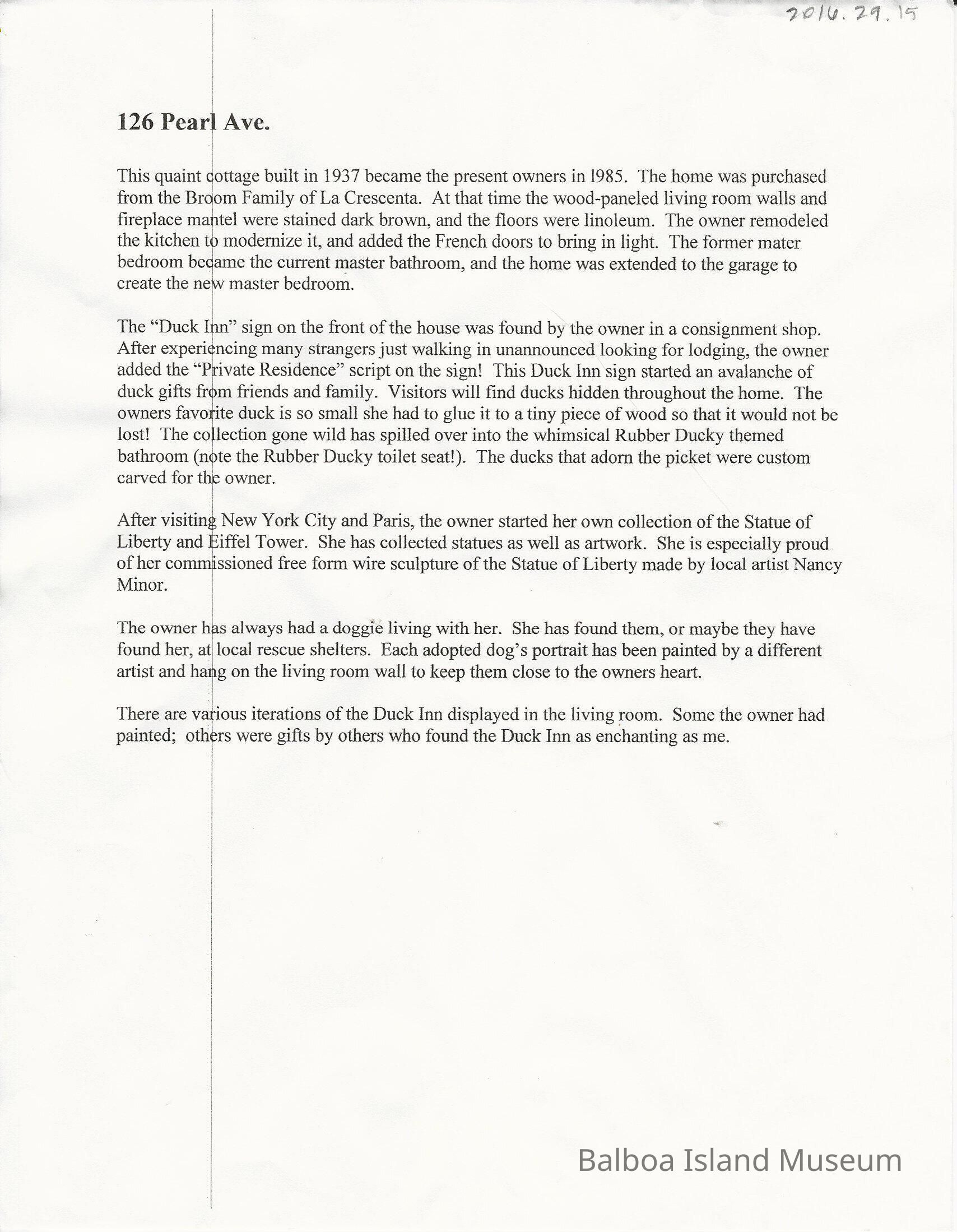 Balboa Homes, 126 Pearl Avenue, The Duck Inn, Local HistoryRelationships