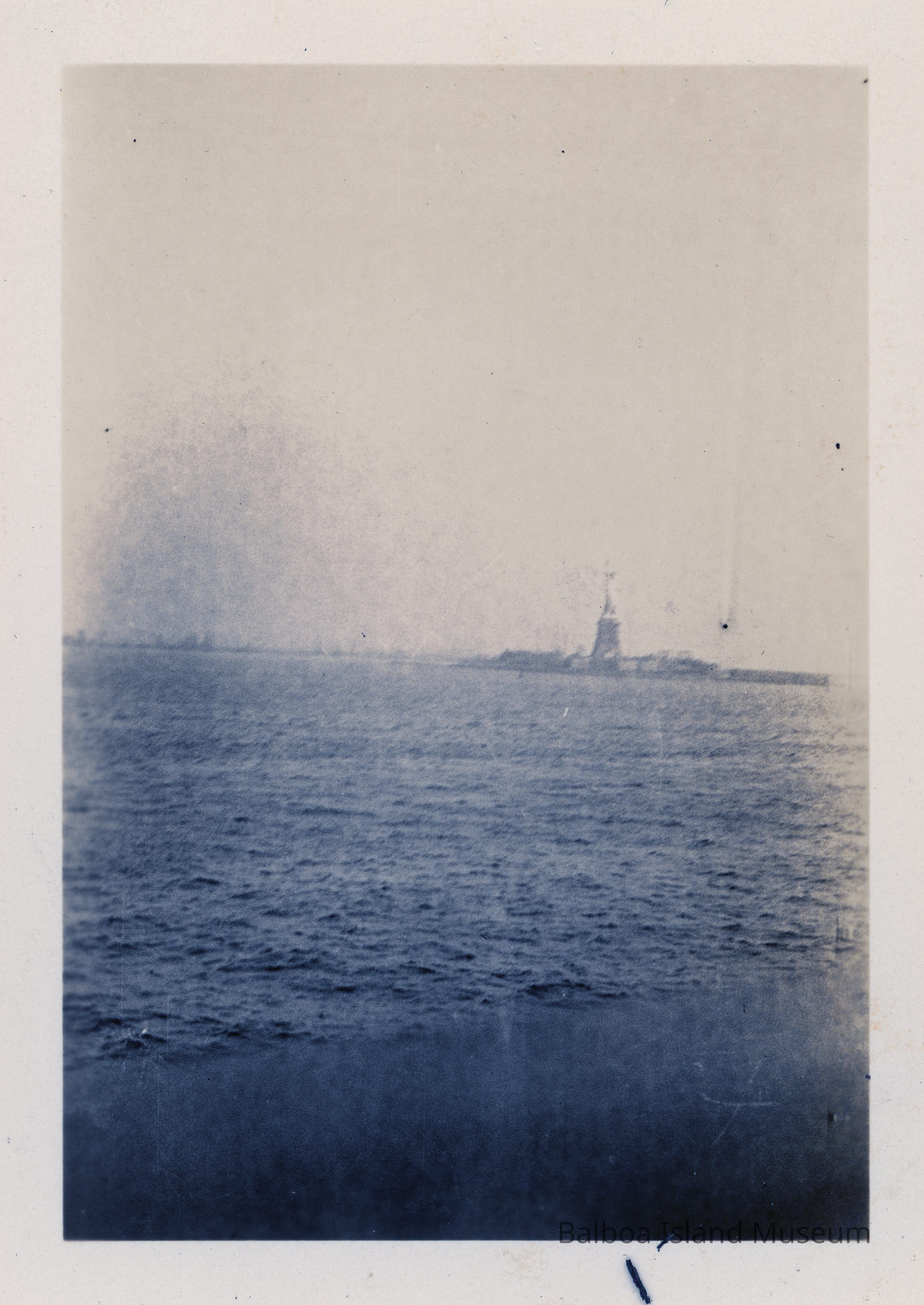 Photo of the Statue of Liberty in the distance with a view if the city in the back left of the photoPhotograph Details