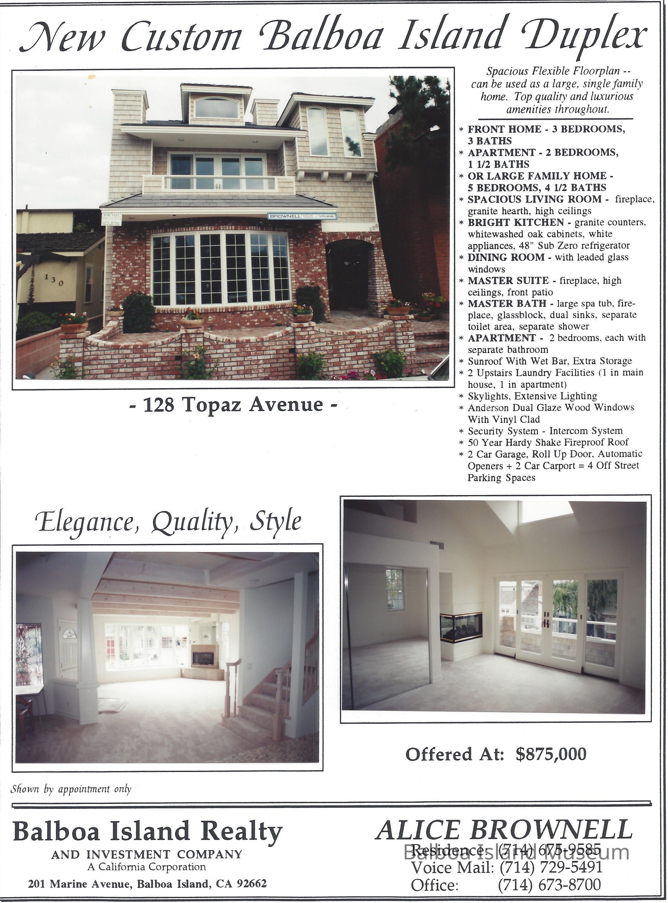 Real Estate brochure with color photo of home at 128 Topaz Avenue.Lexicon