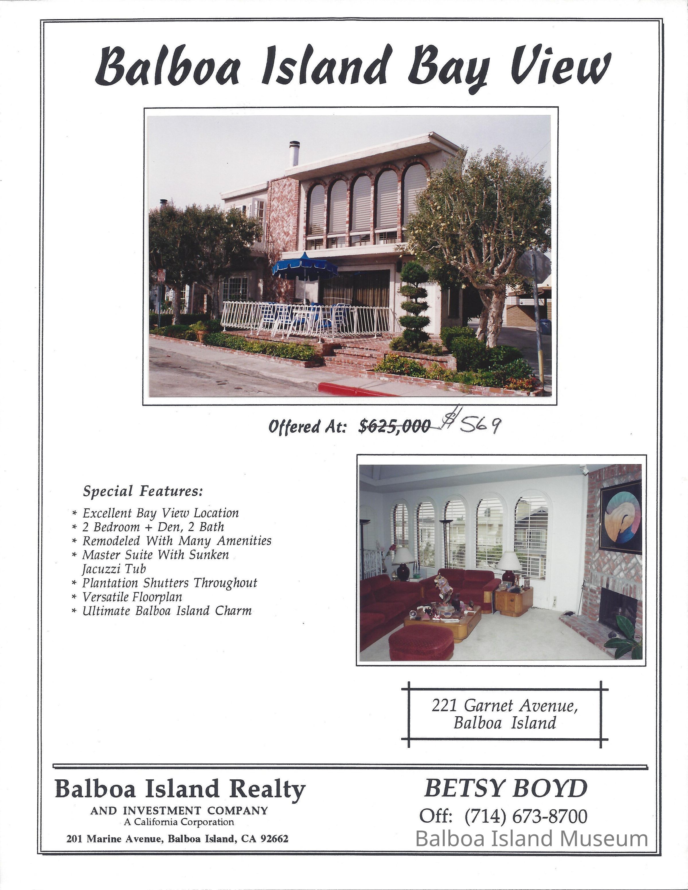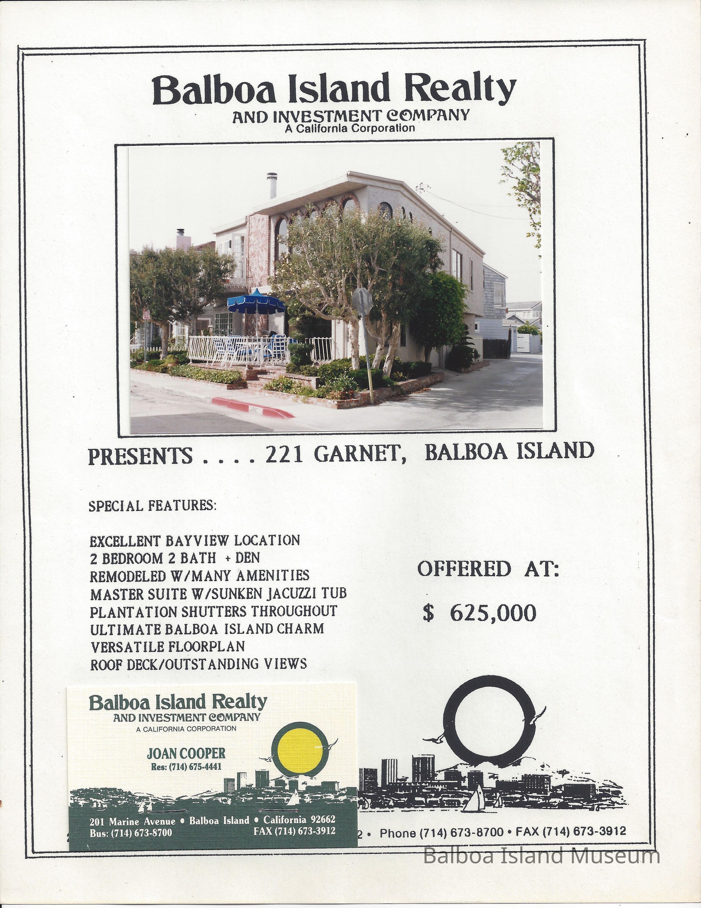 Real Estate brochure with color photo of home at 221 Garnet Avenue.Lexicon