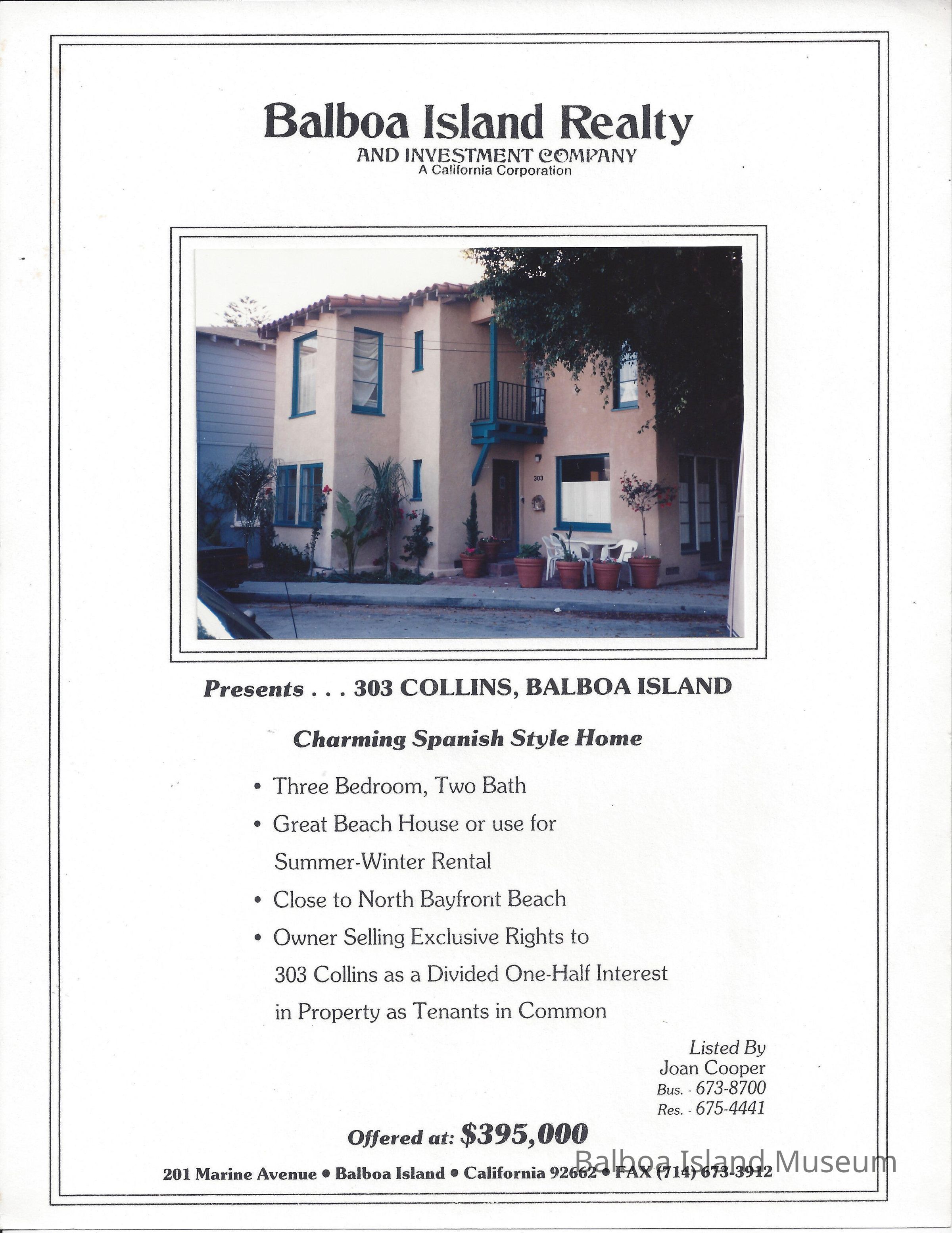 Real Estate brochure with color photo of home at 303 CollinsLexicon