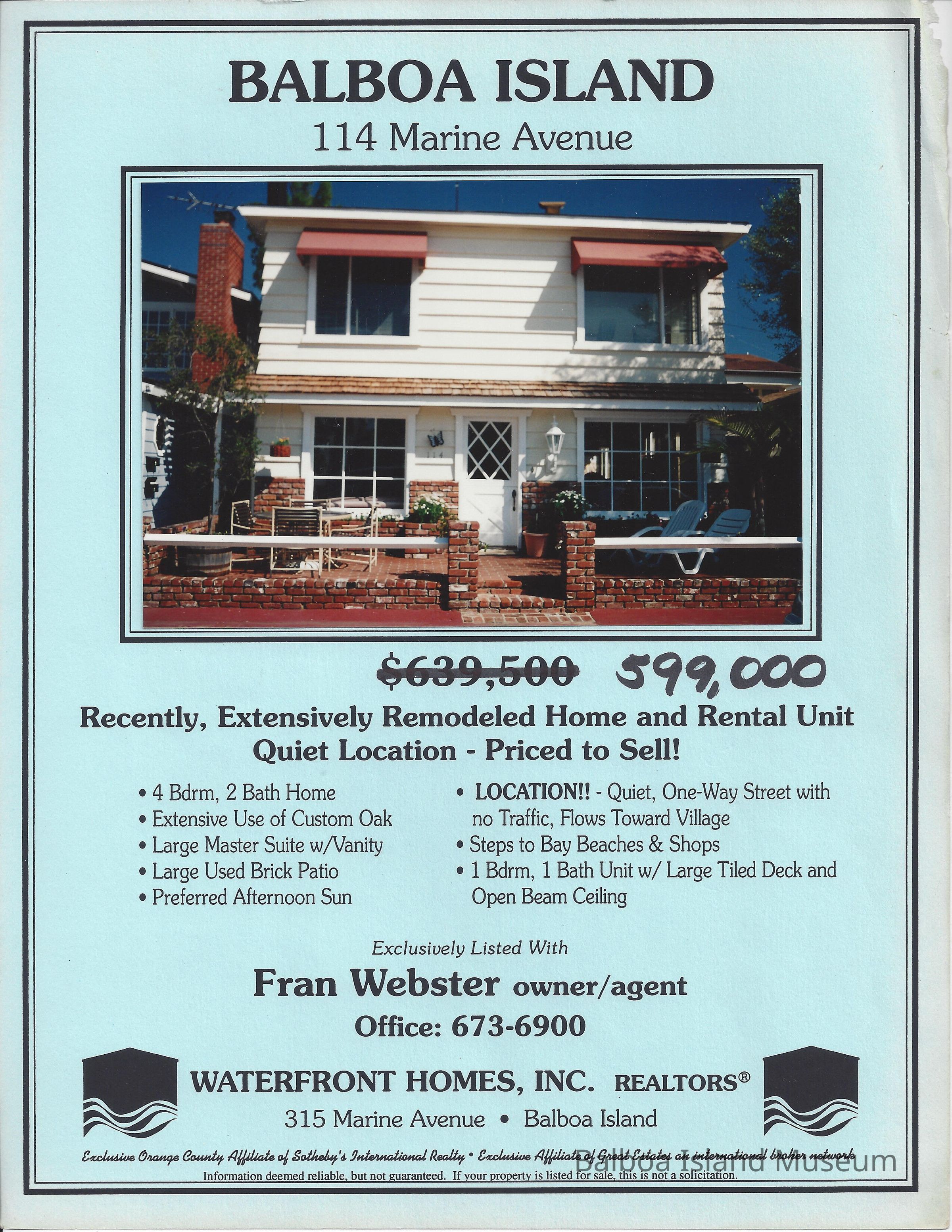 Real Estate brochure with color photo of home at 114 Marine Avenue.Lexicon