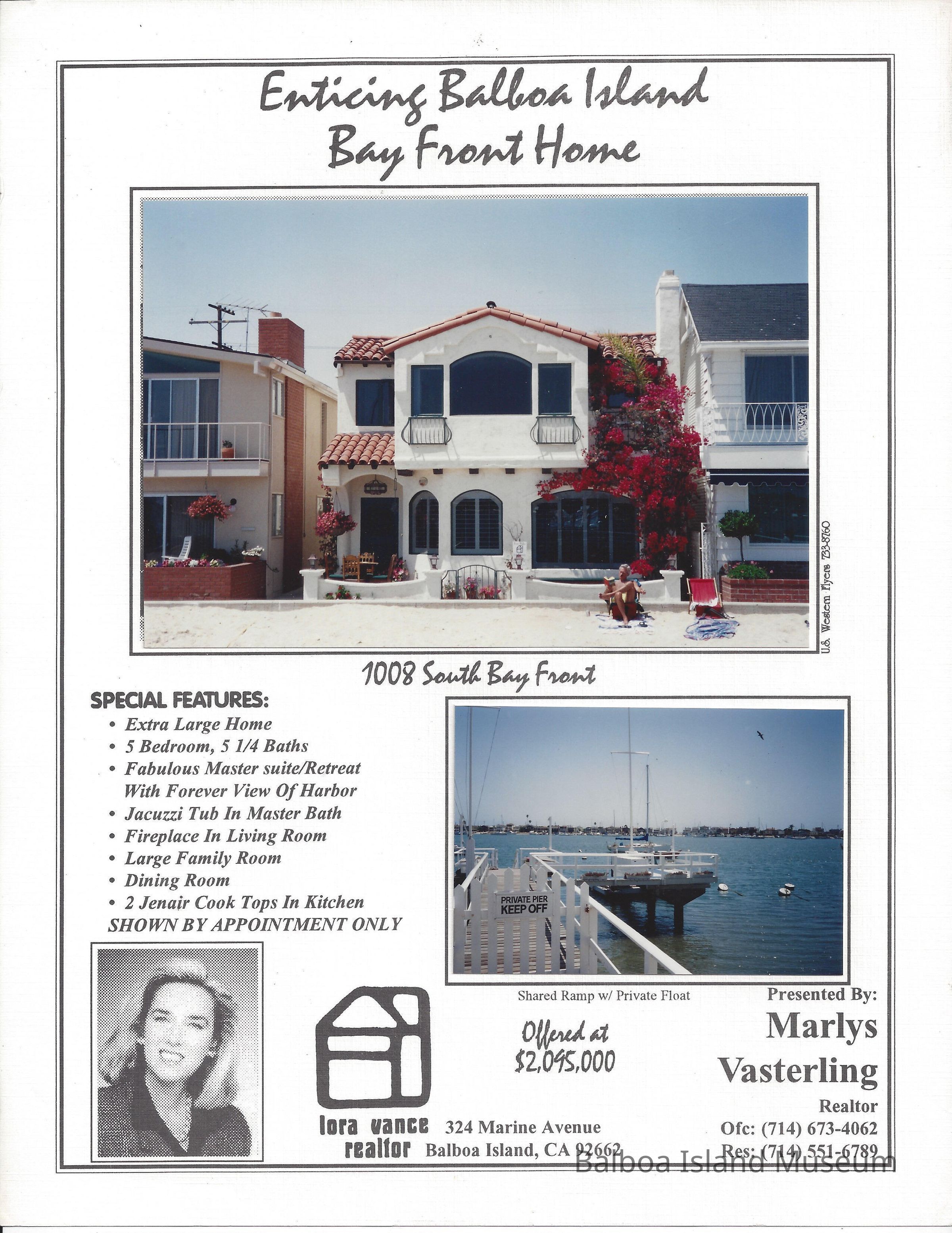 Real Estate brochure with color photo of home at 1008 South Bayfront.Lexicon