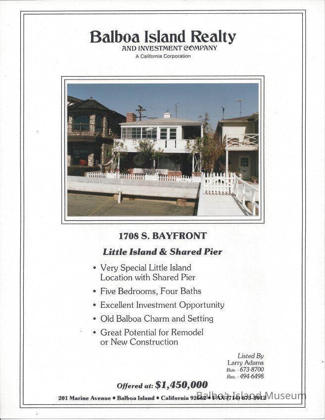 Real Estate brochure with color photo of home at 1708 South Bayfront.Lexicon