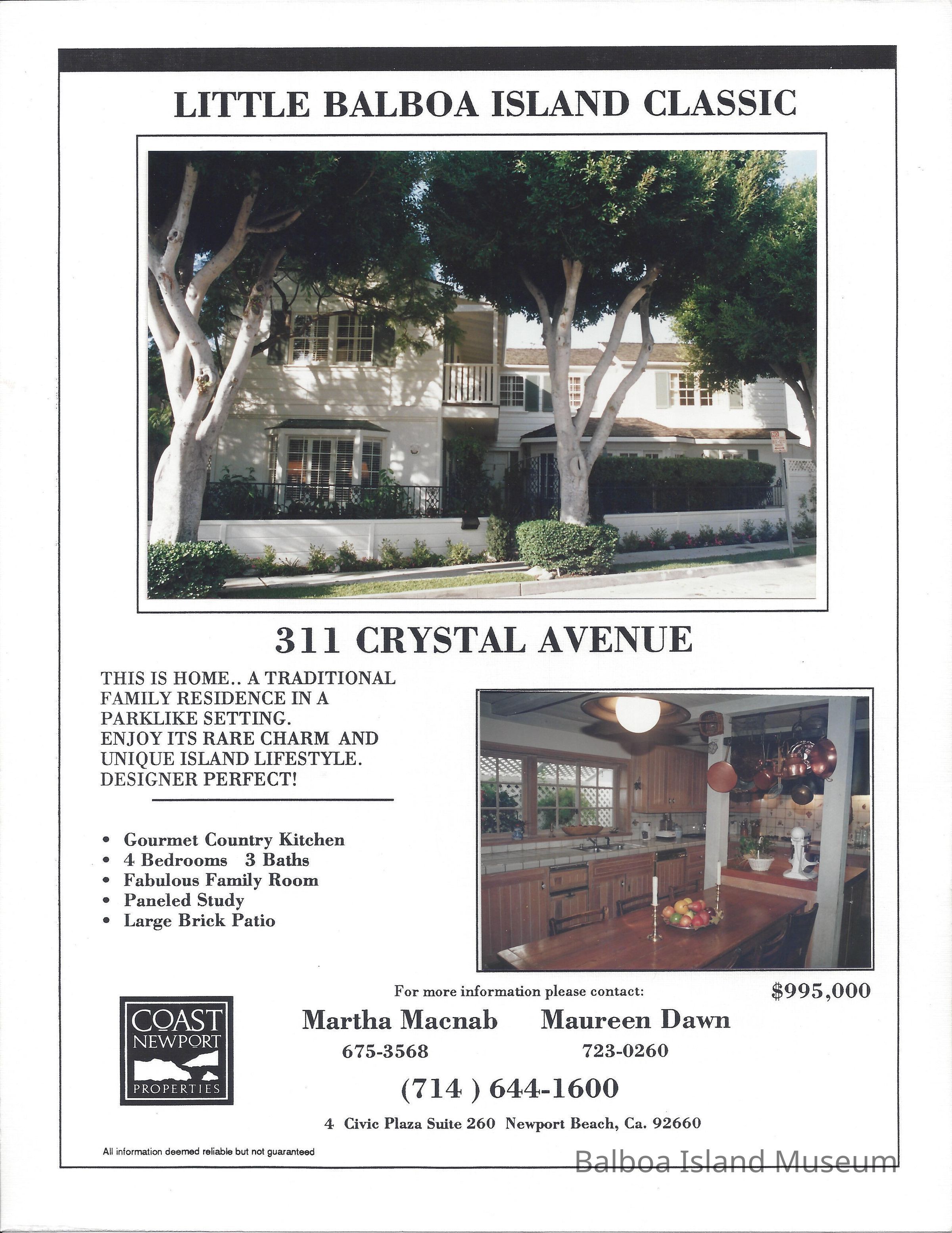 Real Estate brochure with color photo of home at 311 Crystal Avenue.Lexicon