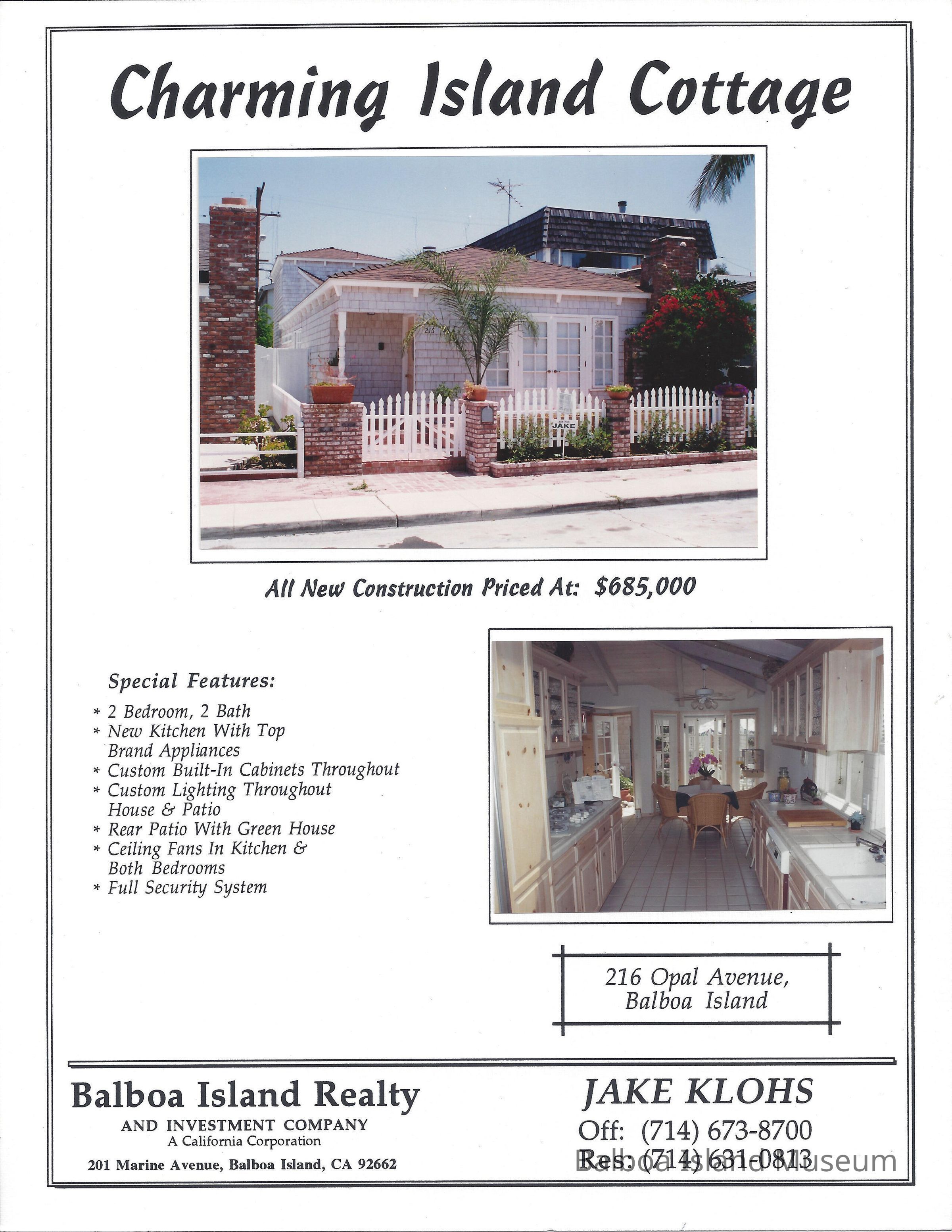 Real Estate brochure with color photo of home at 216 Opal Avenue.Lexicon