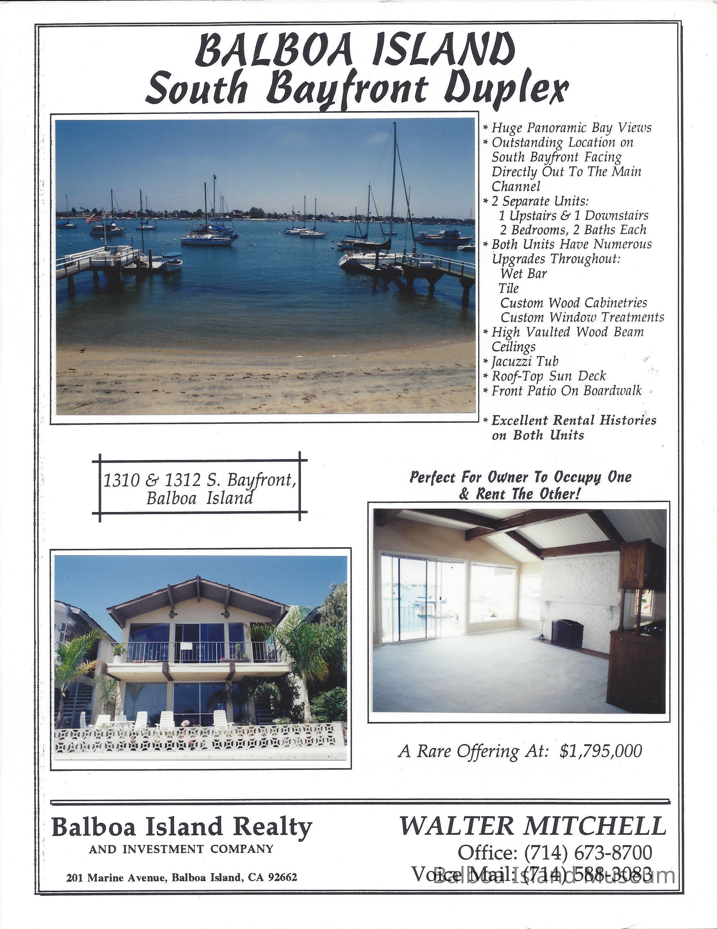 Real Estate brochure with color photo of home at 1312 South Bayfront.Lexicon