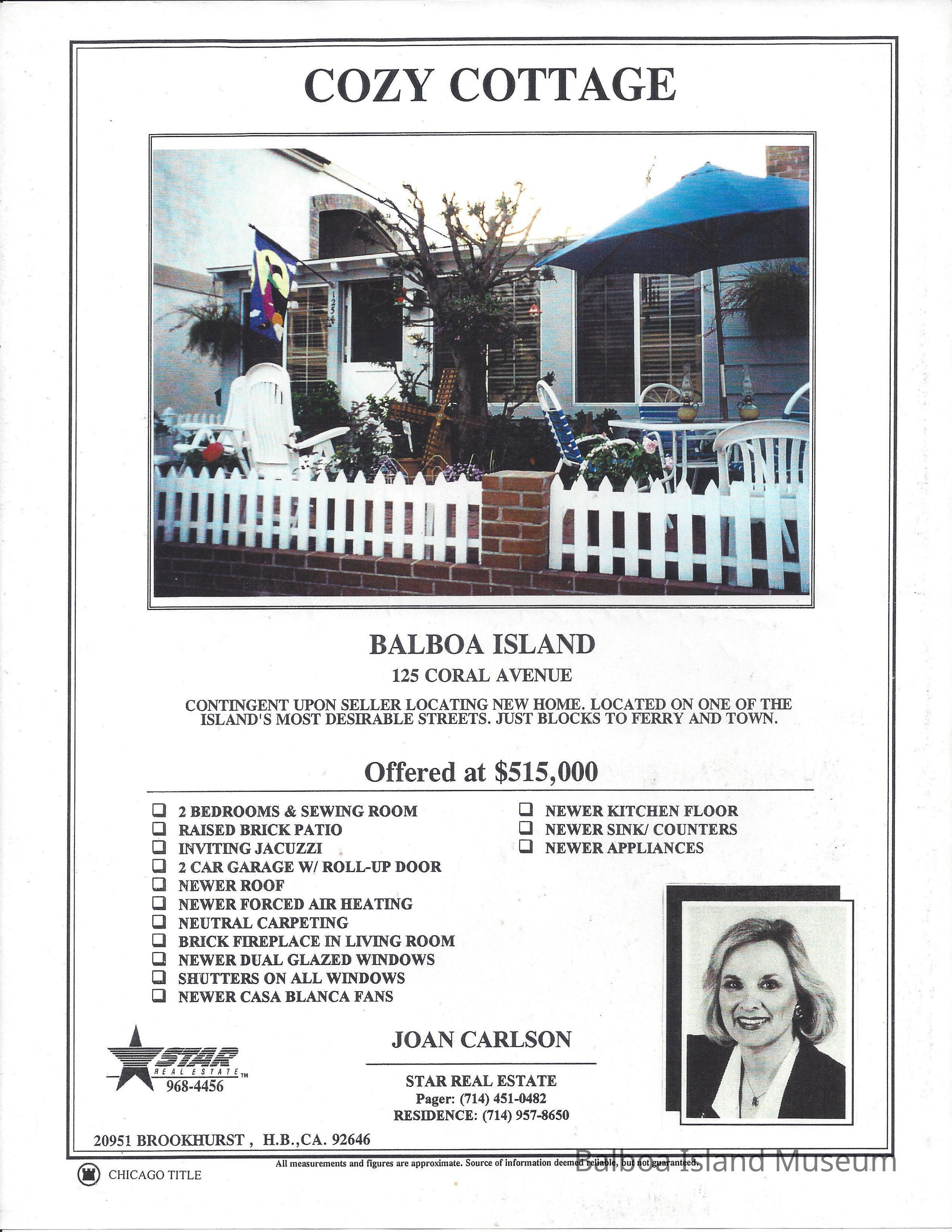 Real Estate brochure with color photo of home at 125 Coral Avenue.Lexicon