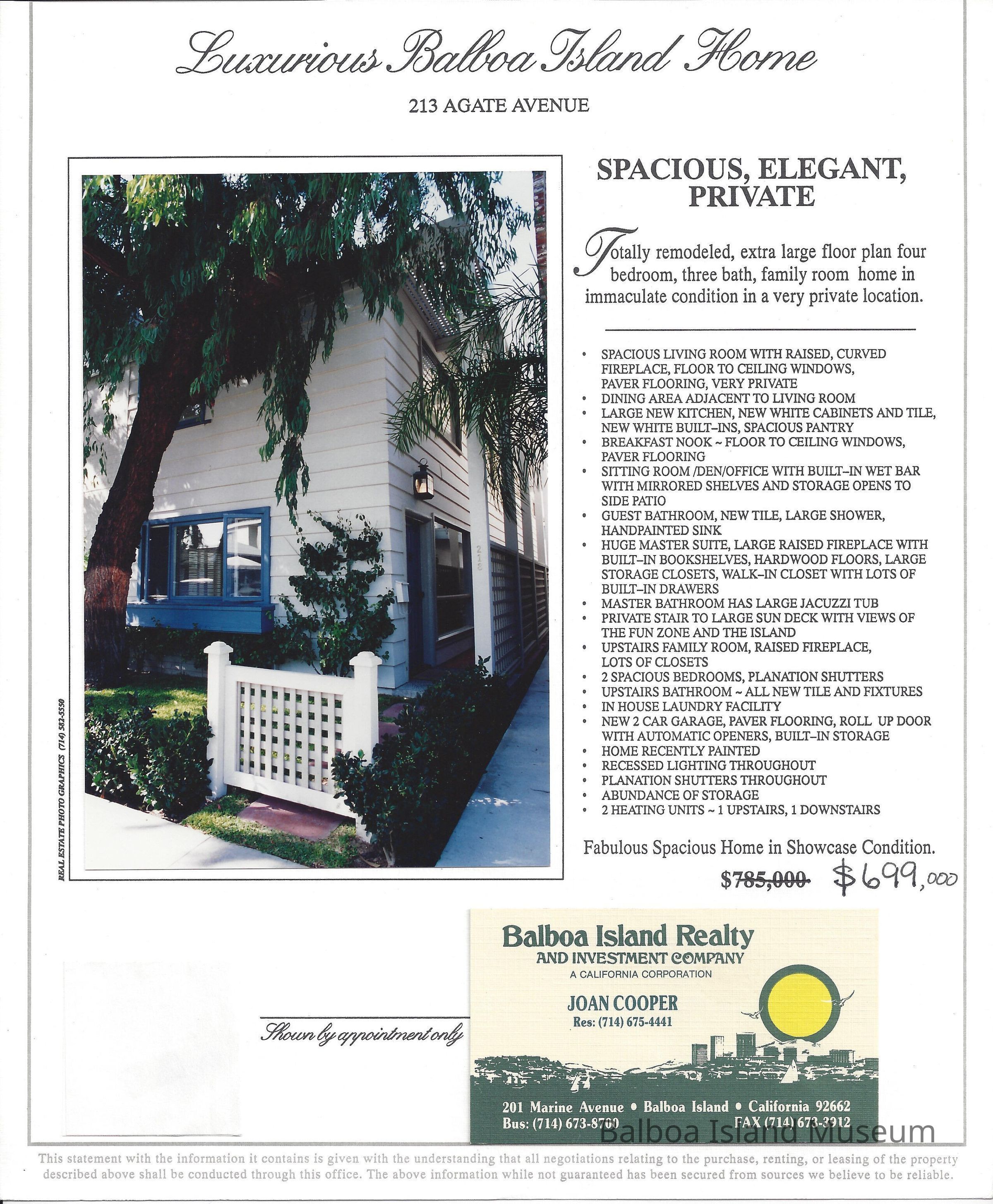 Real Estate brochure with color photo of home at 213 Agate Avenue.Lexicon