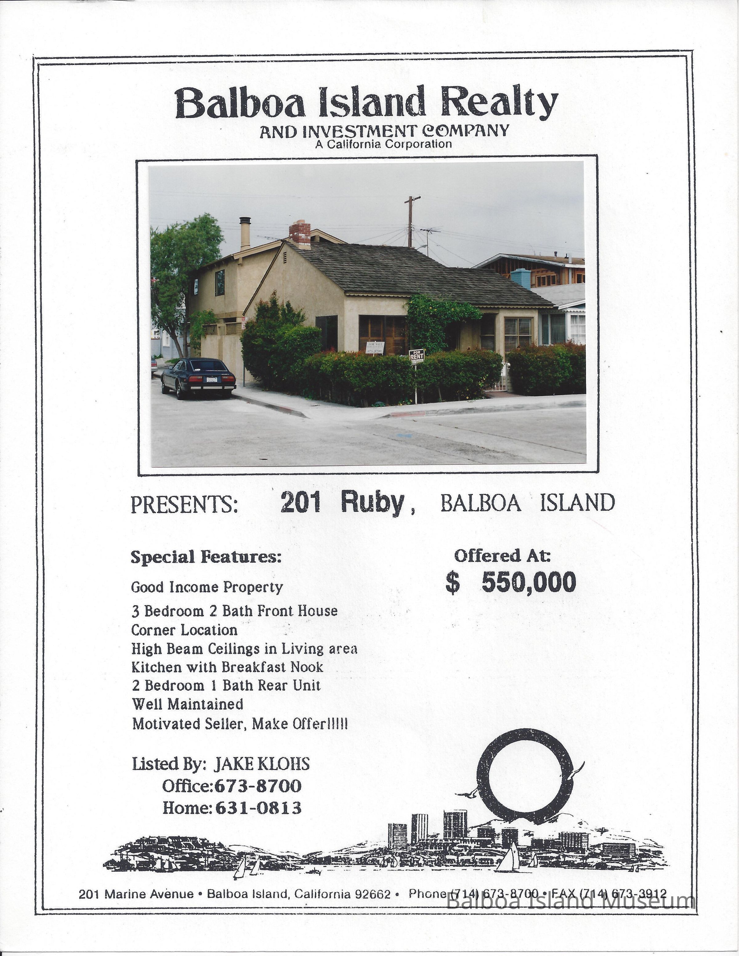 Real Estate brochure with color photo of home at 201 Ruby Avenue.Lexicon