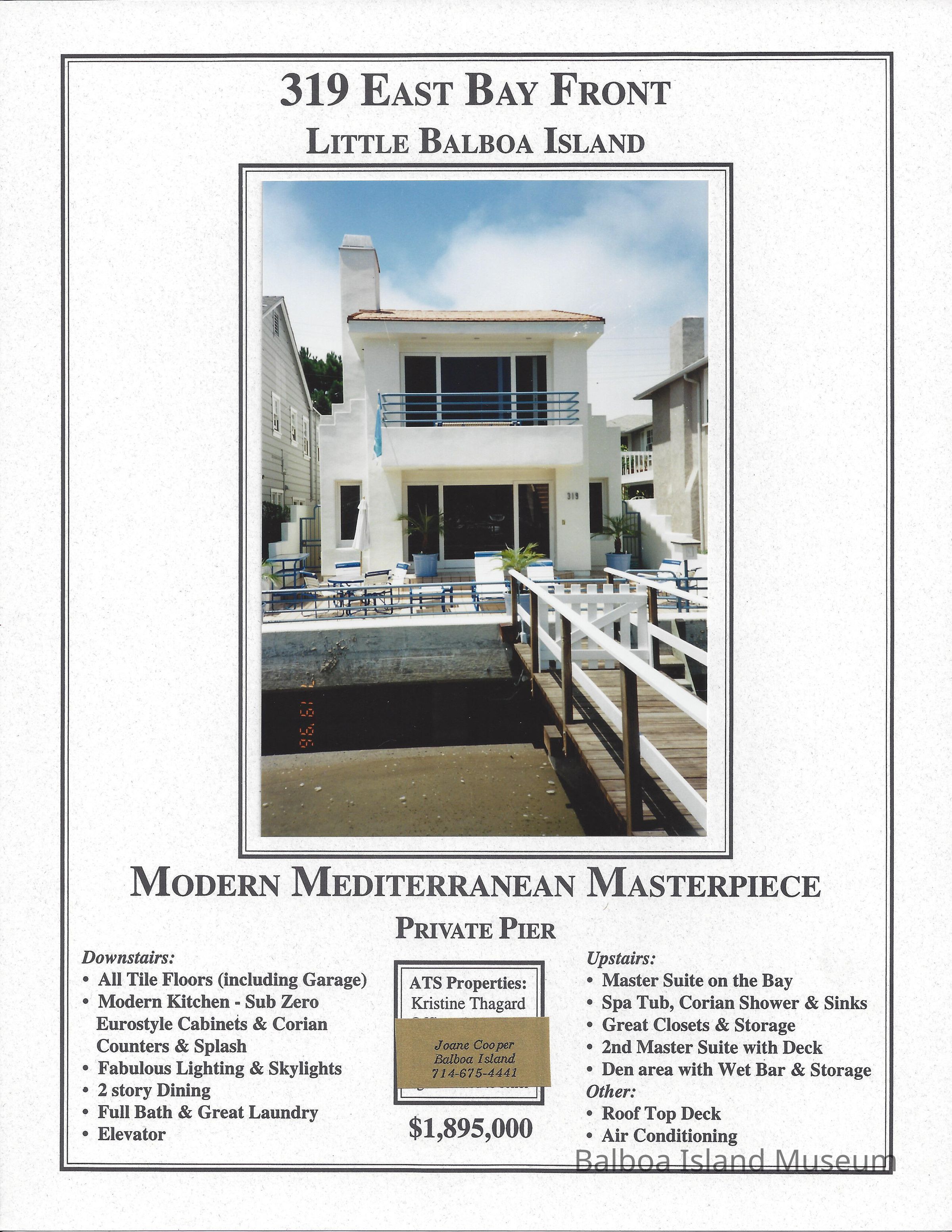 Real Estate brochure with color photo of home at 319 East Bayfront.Lexicon