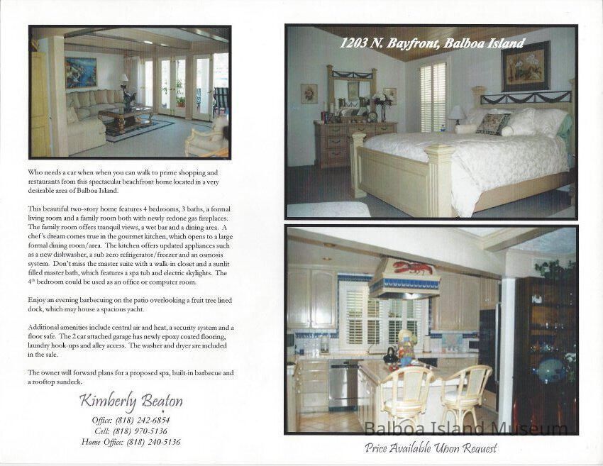 Real Estate brochure with color photo of home at 1203 North bayfront.Lexicon