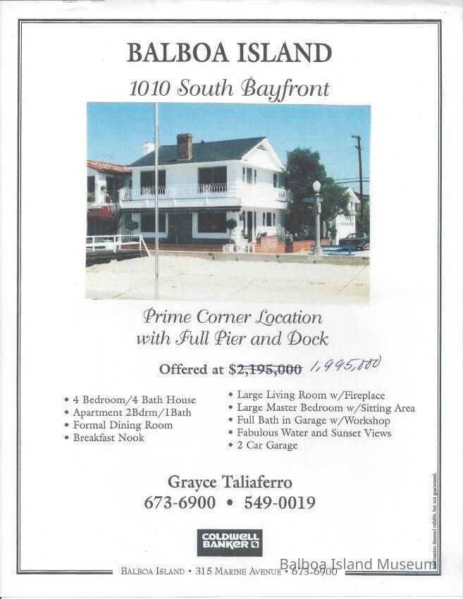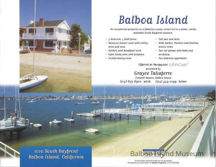 Real Estate brochure with color photo of home at 1010 South Bayfront.Lexicon
