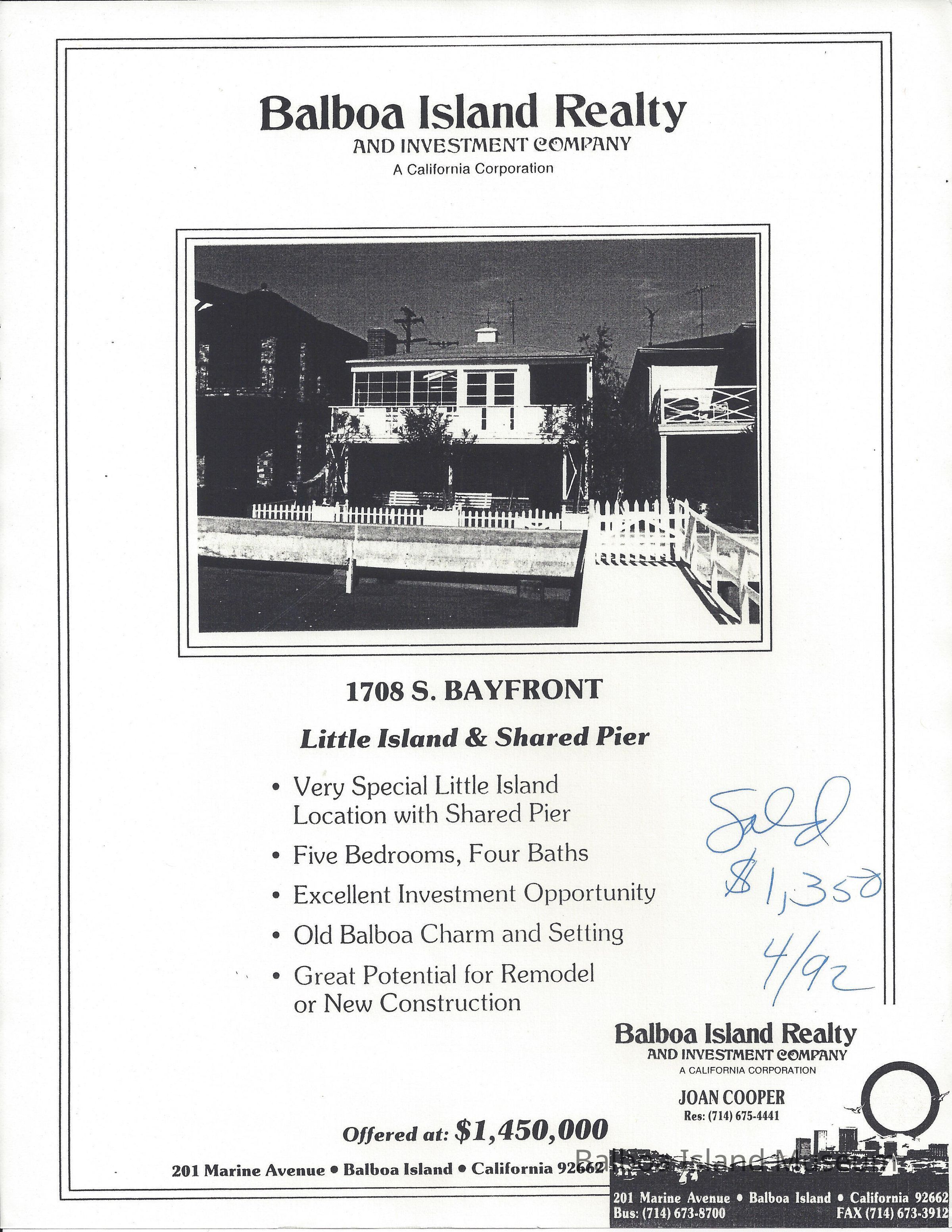 Advertisement for home for sale at 1708 South Bayfront.Lexicon