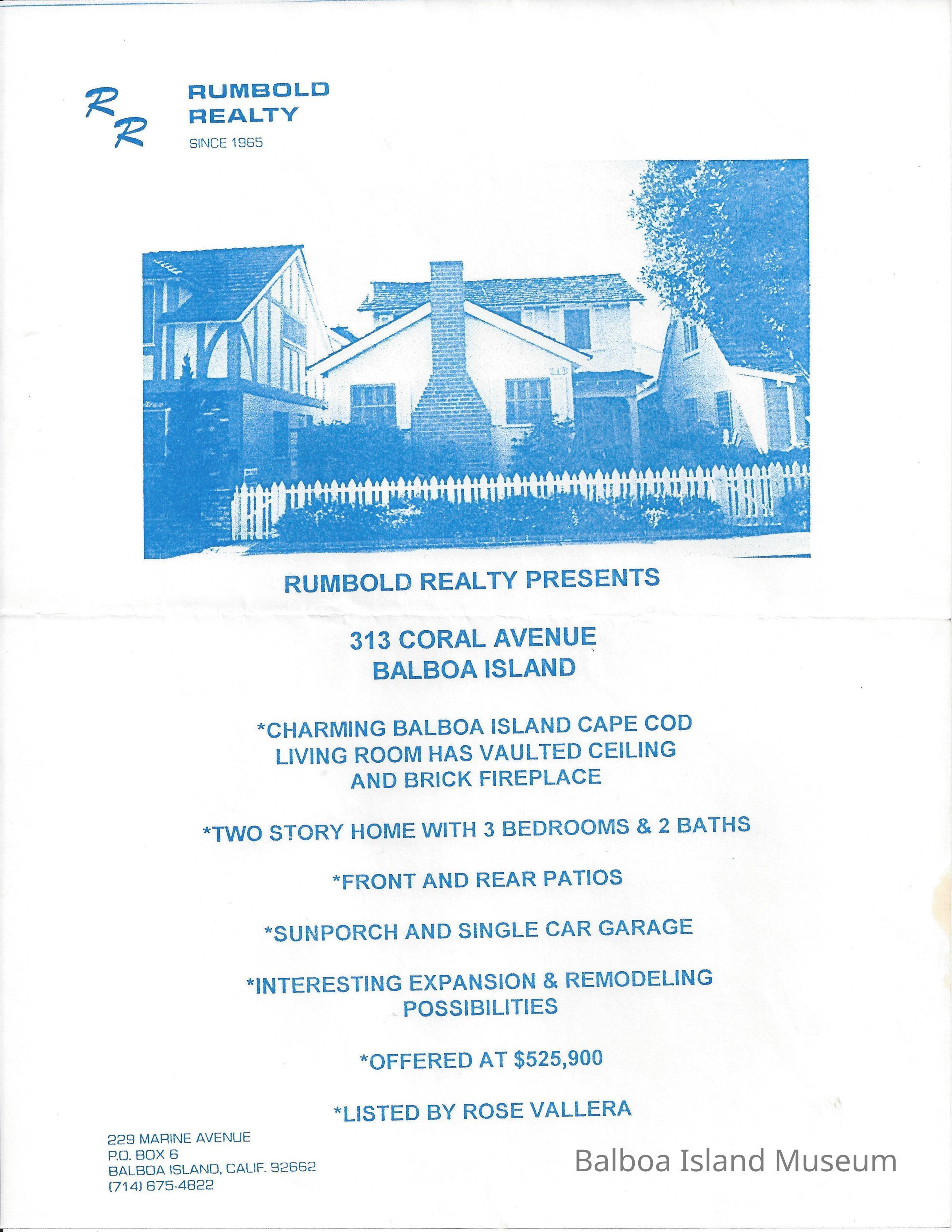 Advertisement for home for sale at 313 Coral Avenue.Lexicon