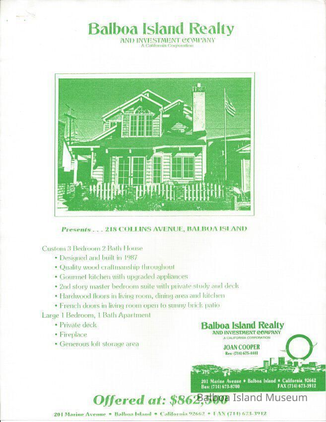 Advertisement for home for sale at 218 Collins Avenue.Lexicon
