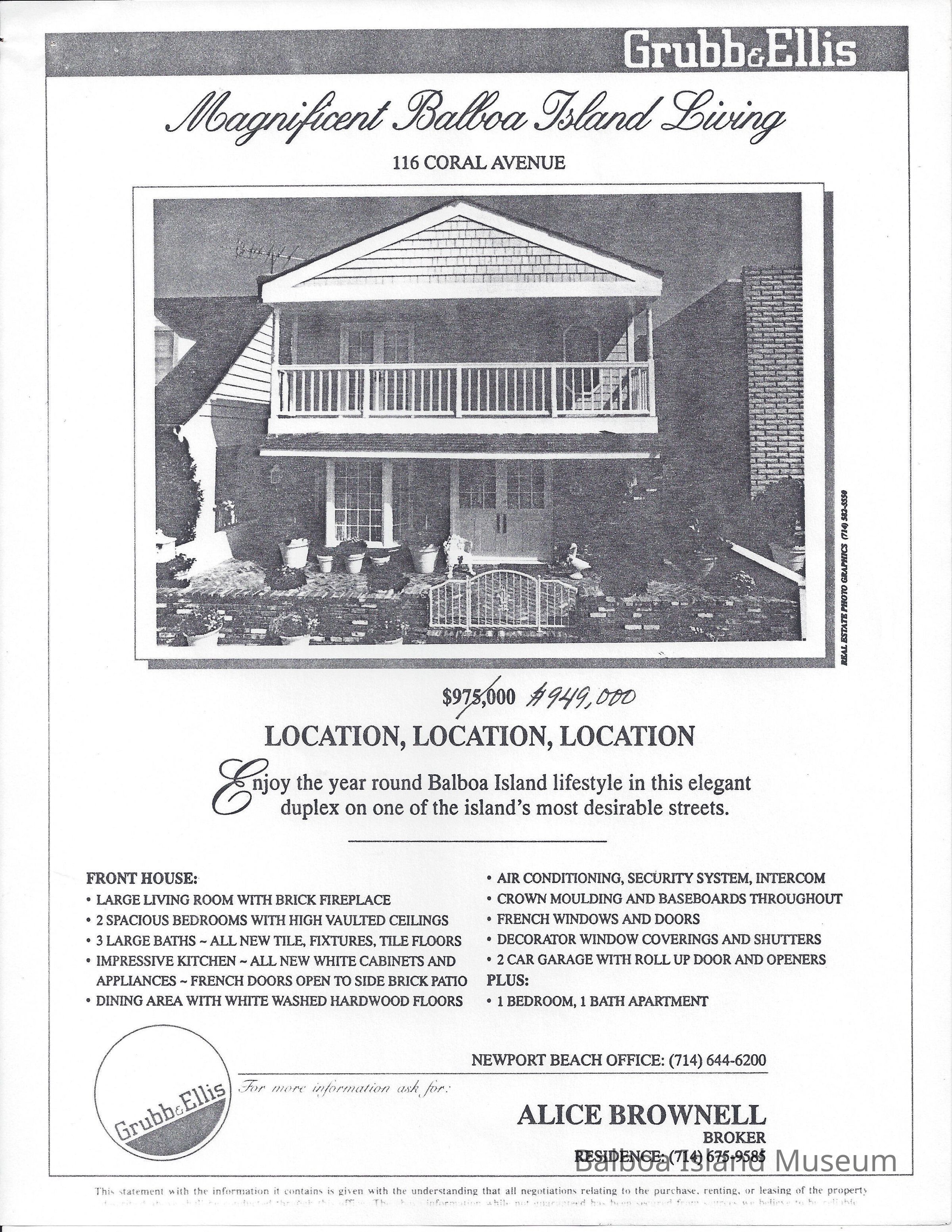 advertisement for home for sale at 116 Coral Avenue.Lexicon