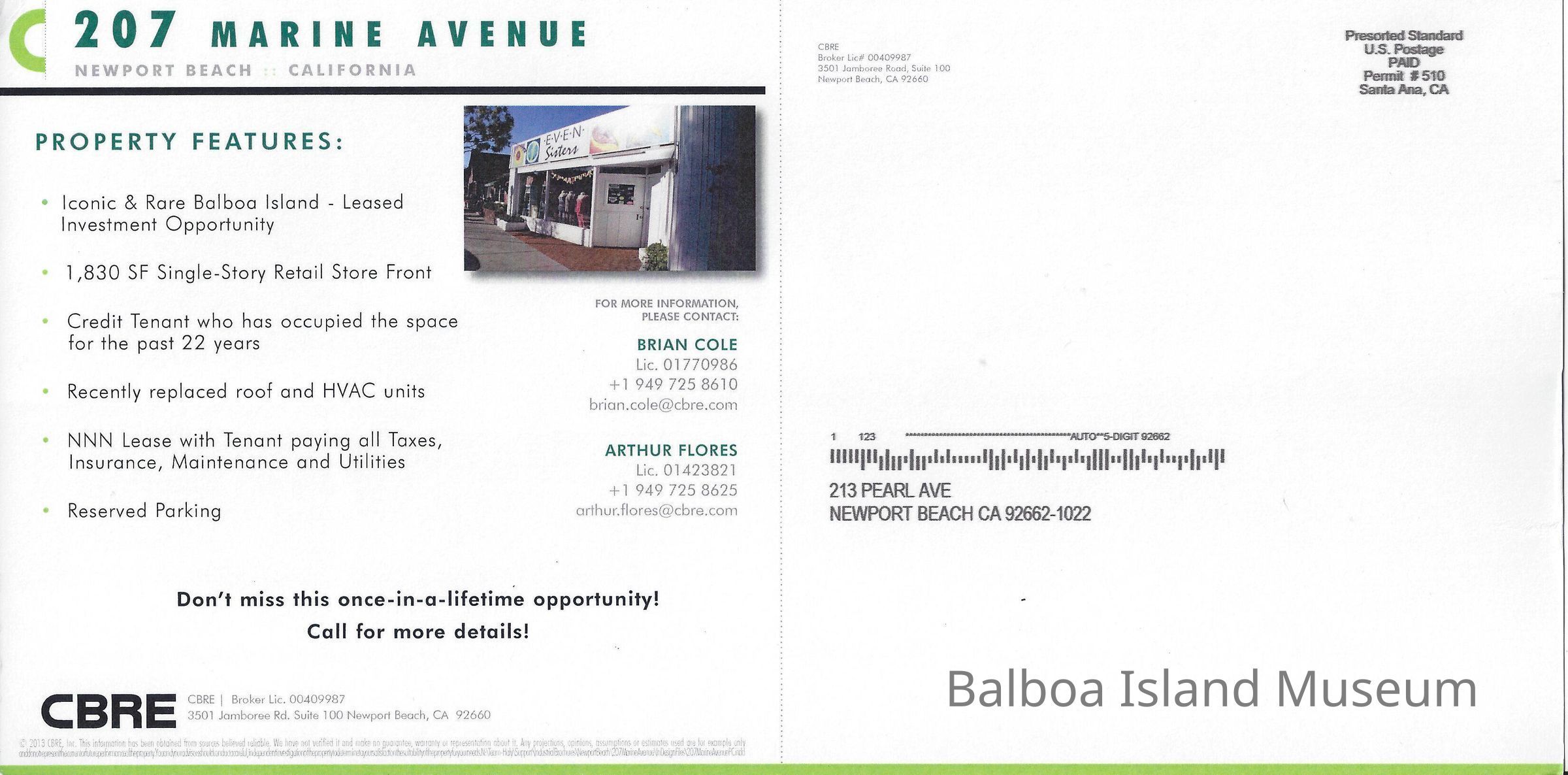 Real Estate brochure with color photo of building at 207 Marine Avenue.Lexicon