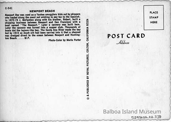 Unused. Divided back. Published by Royal Pictures. Photograph by Merle Porter. Postcard number C-541.Subject