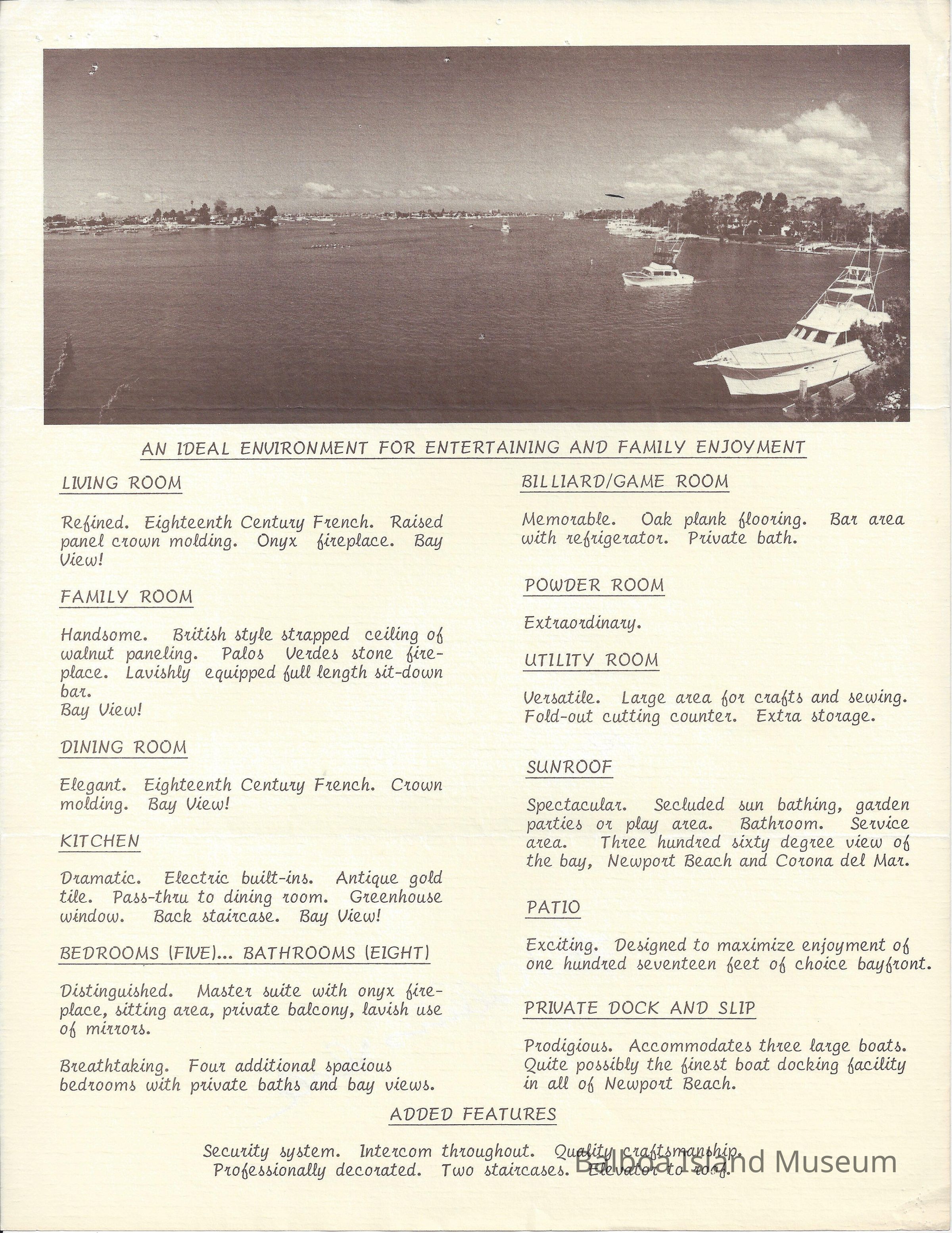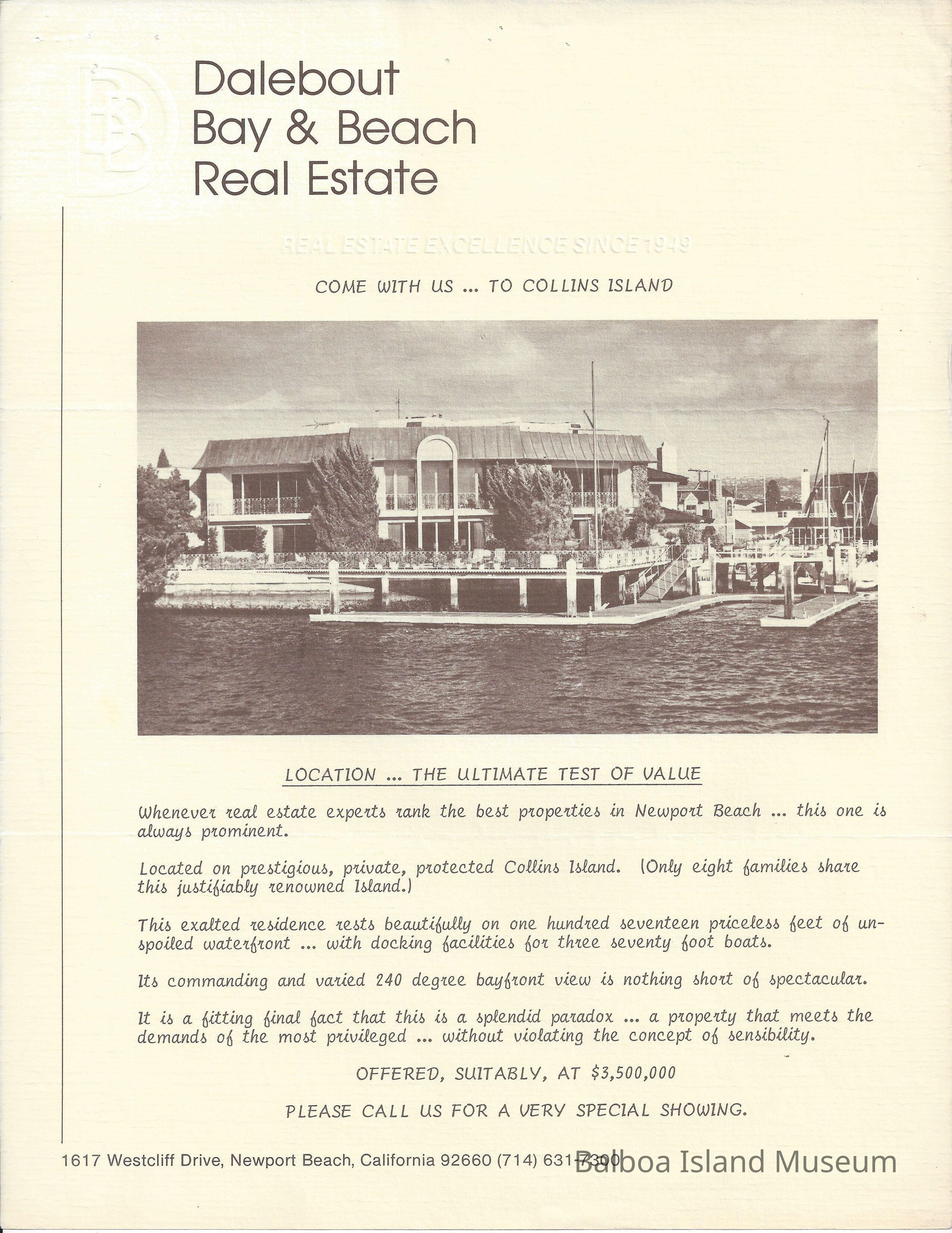 Real Estate brochure with photo of home at 1 Collins Island.Lexicon