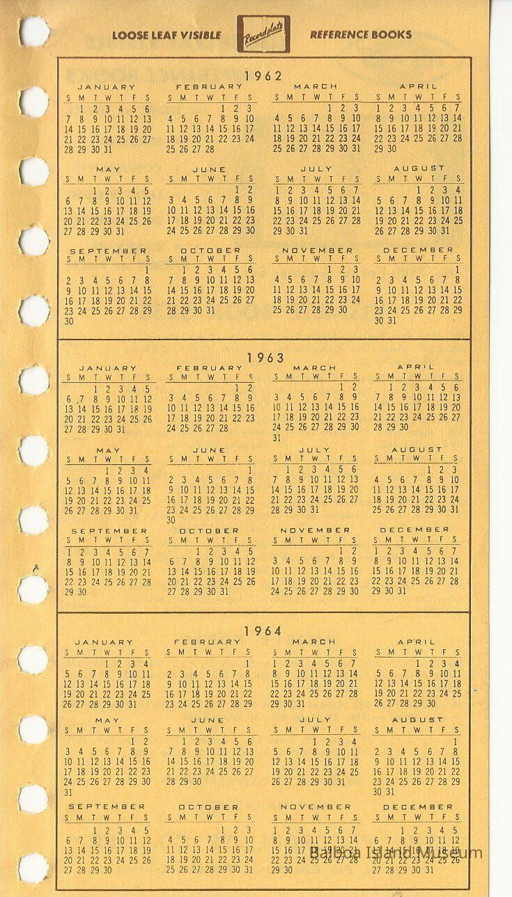 Yellow paper calendar and yellow paper instruction card, both in brown text.Collection