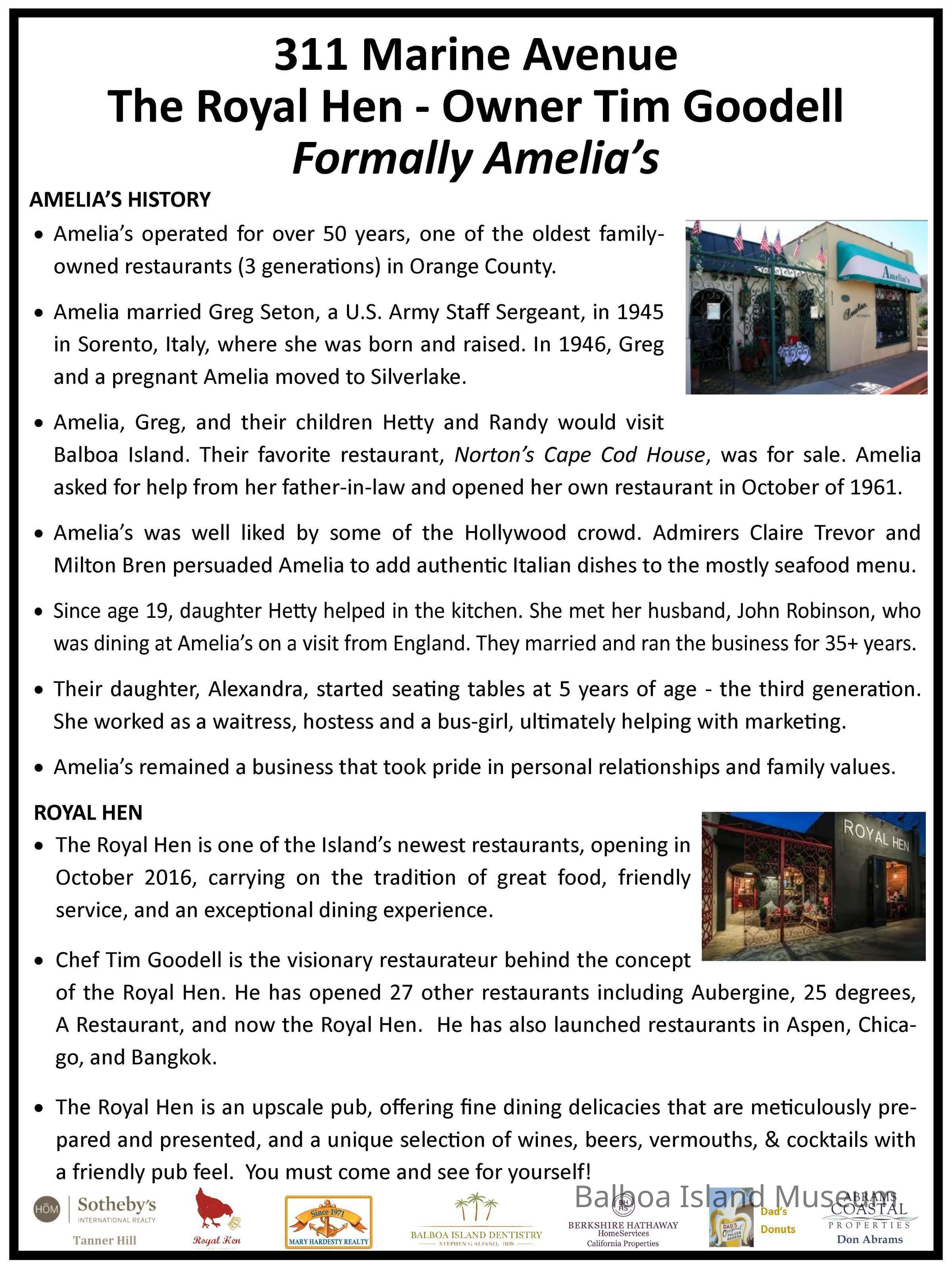 311 Marine Avenue white info chart, black text, contains historic info on the house.Collection
