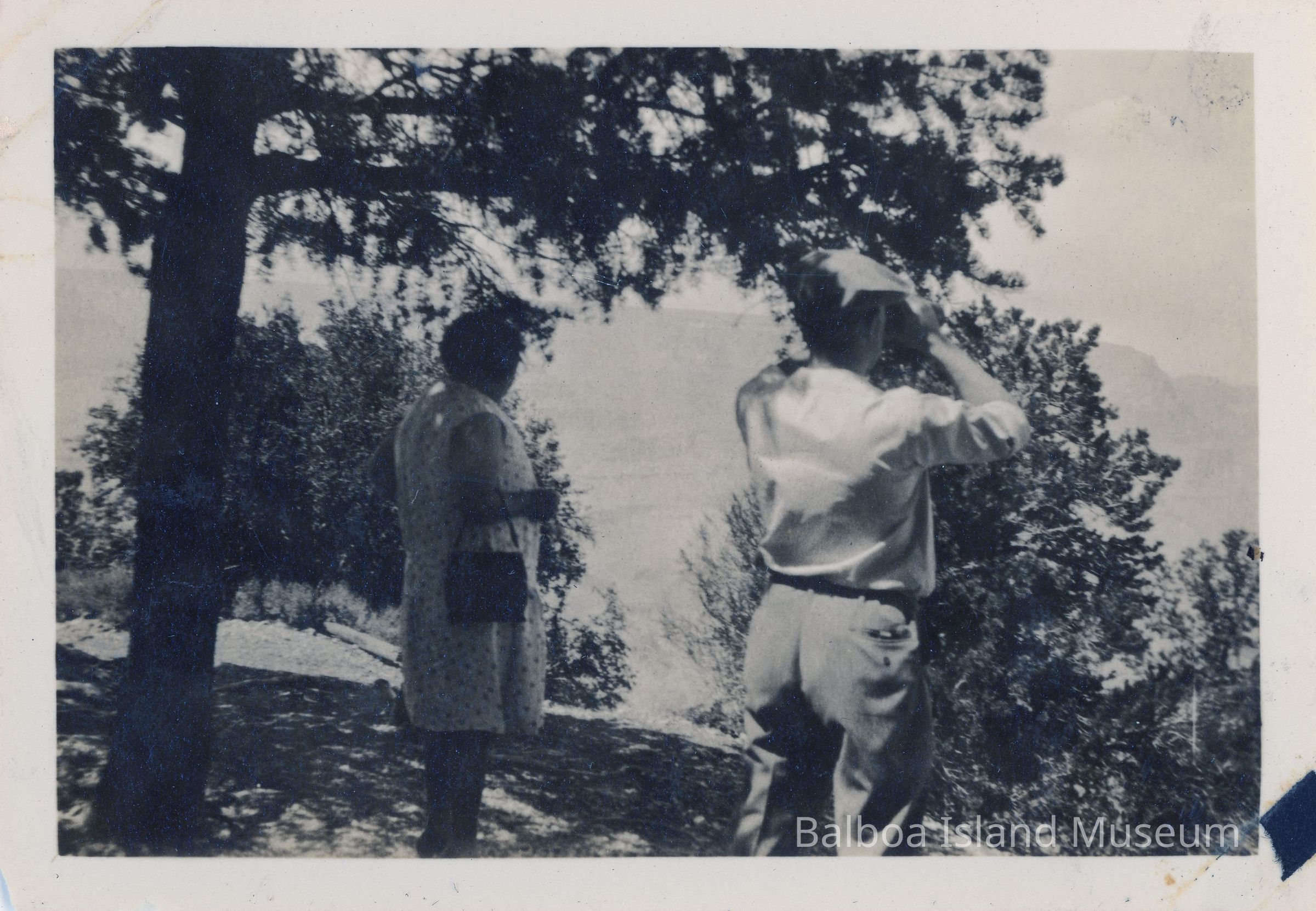 Photo of couple looking out to a view in the shade of a treePhotograph Details