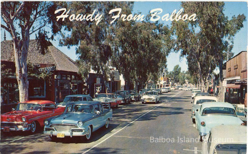 A photograph postcard looking up the 200 block of marine towards Irvine terrace. It was taken from in front of the post office or Maxwell's/Ida's.