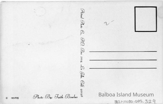 Unused. Published by Actual Photo Co. Photograph by Faith Bowlus. Postcard number SD115Subject