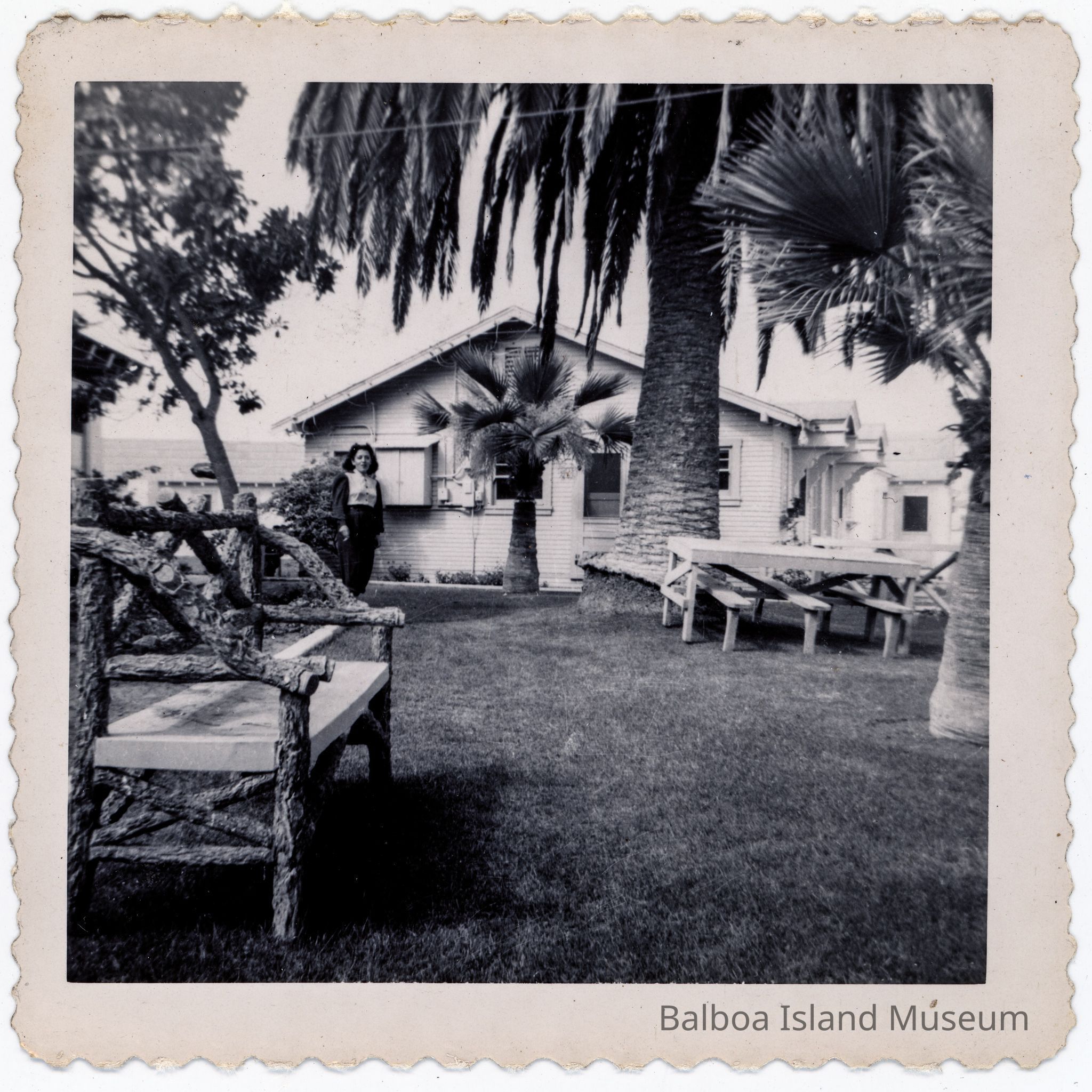 Mrs. McNamera in front of the house on the lawnPhotograph Details