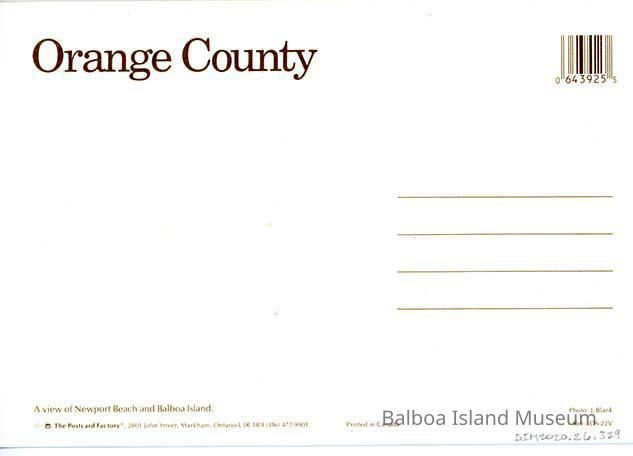Unused. The back has a barcode instead of a stamp box. Published and printed by The Postcard Factory. Photograph by James Blank. Postcard number LOS-22V.Subject