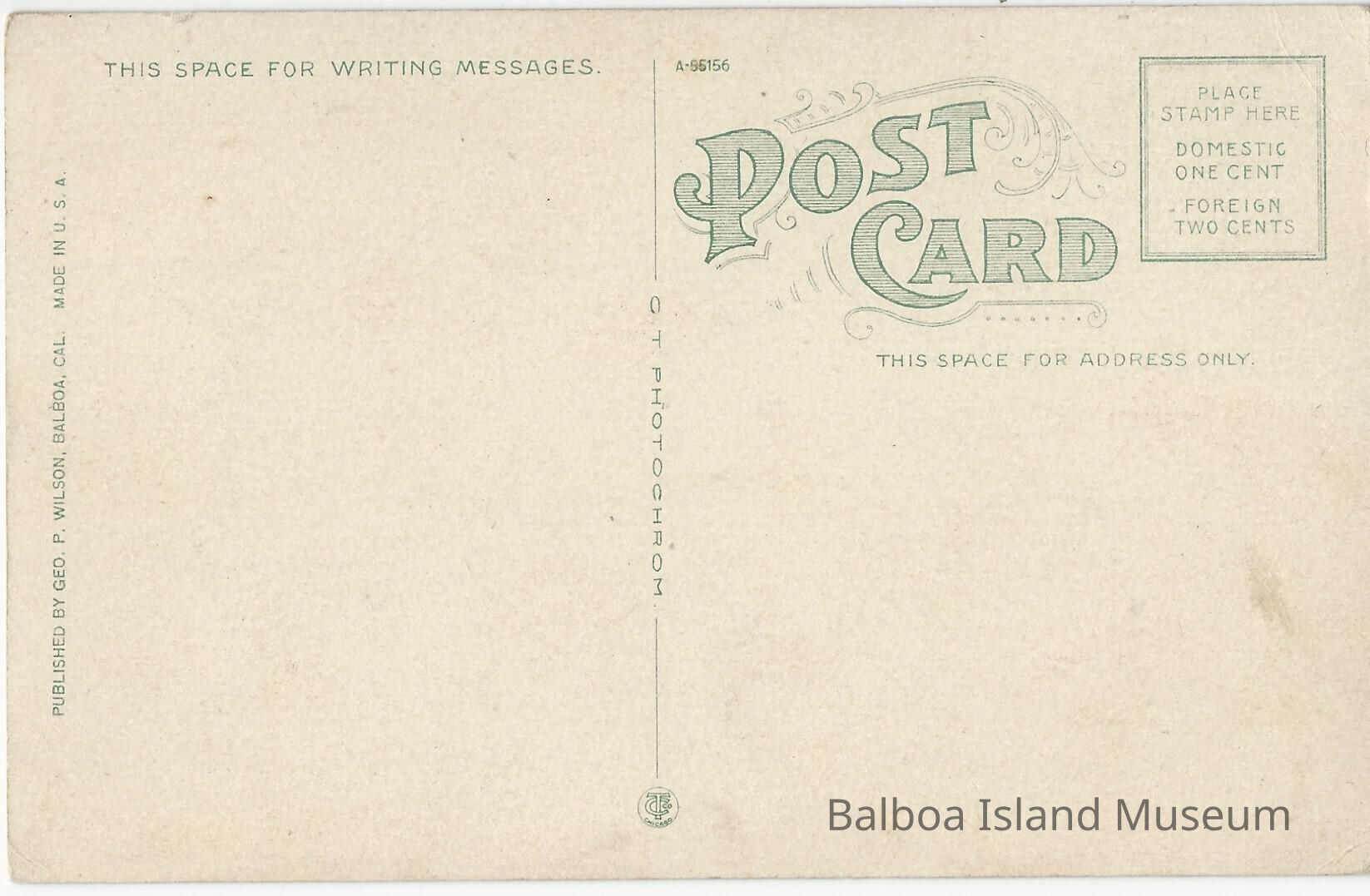 An artistic rendering of the rocks off the Balboa or Corona del Mar coast on a postcard. Published by Geo. P. Wilson, Balboa, Cal.Lexicon